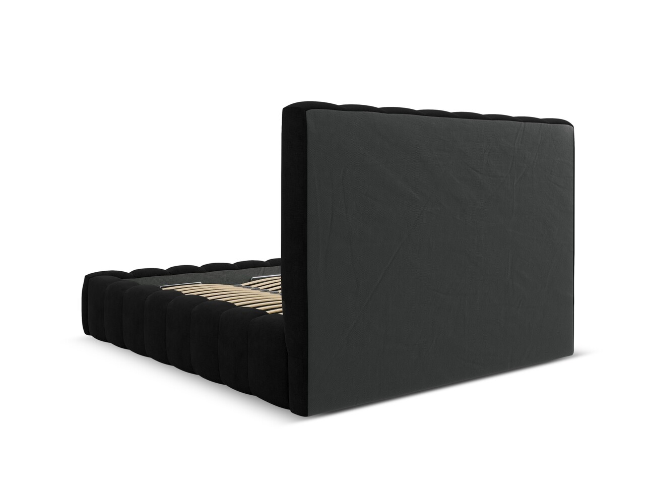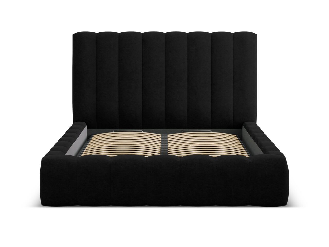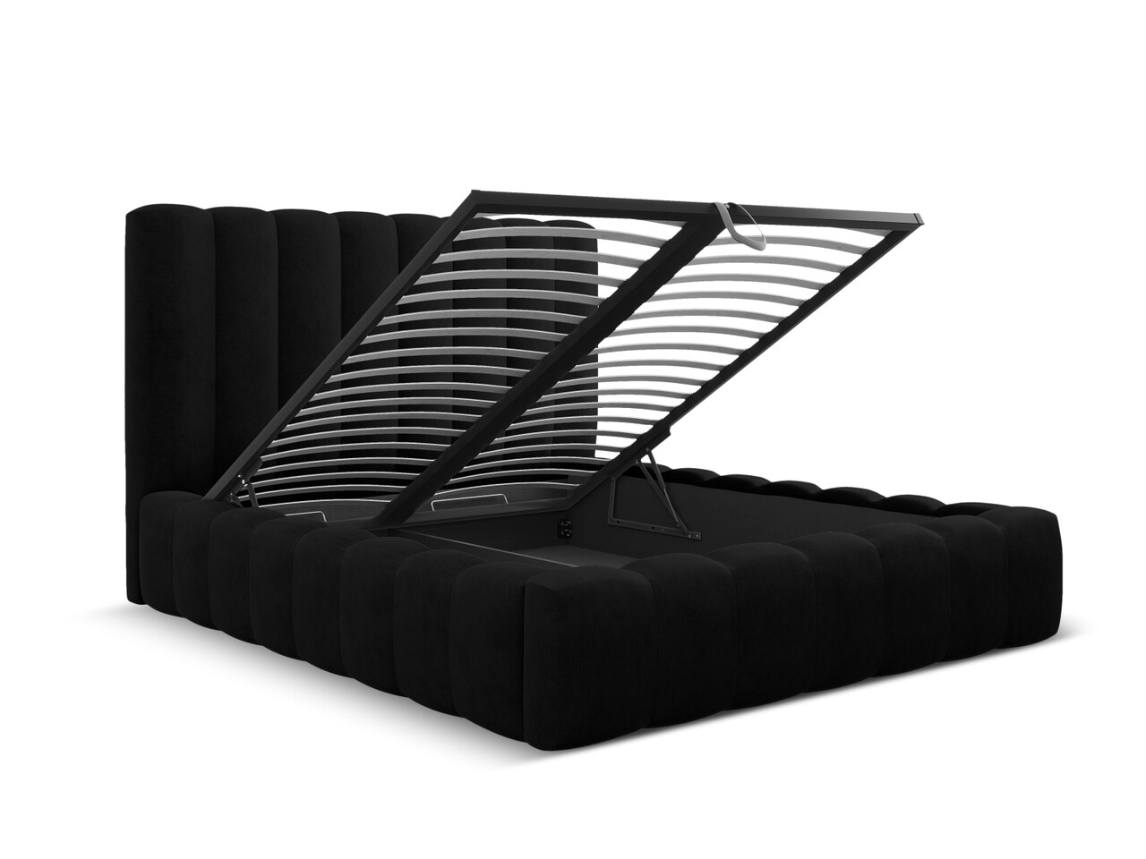 Pat tapitat cu somiera rabatabila si lada depozitare, 140x200 cm, Micadoni Home, Kelp-138, tesatura structurata chenille, negru