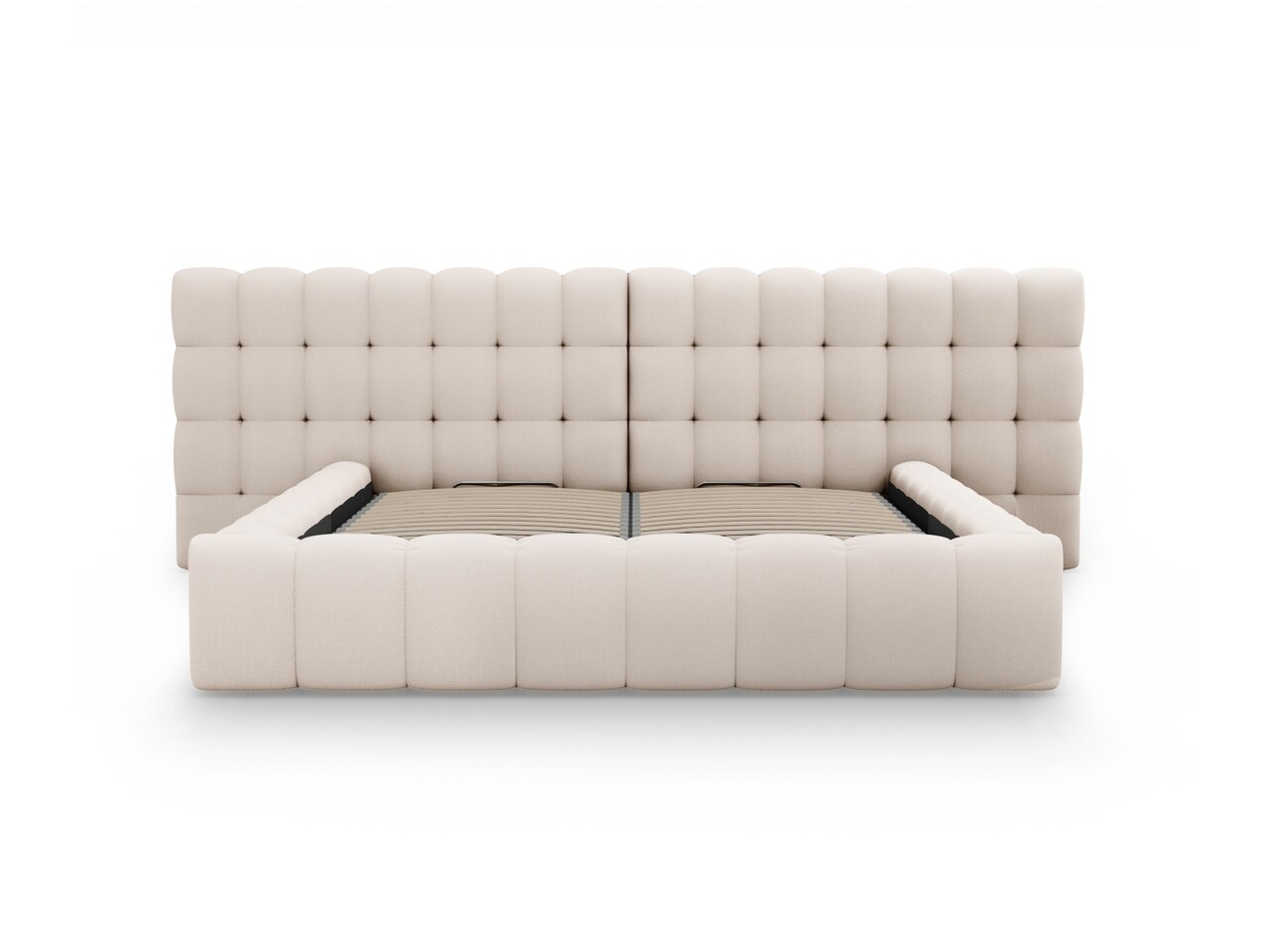Pat tapitat cu somiera rabatabila si lada depozitare, 140x200 cm, Micadoni Home, Mamaia-170, tablie dubla, tesatura structurata, bej