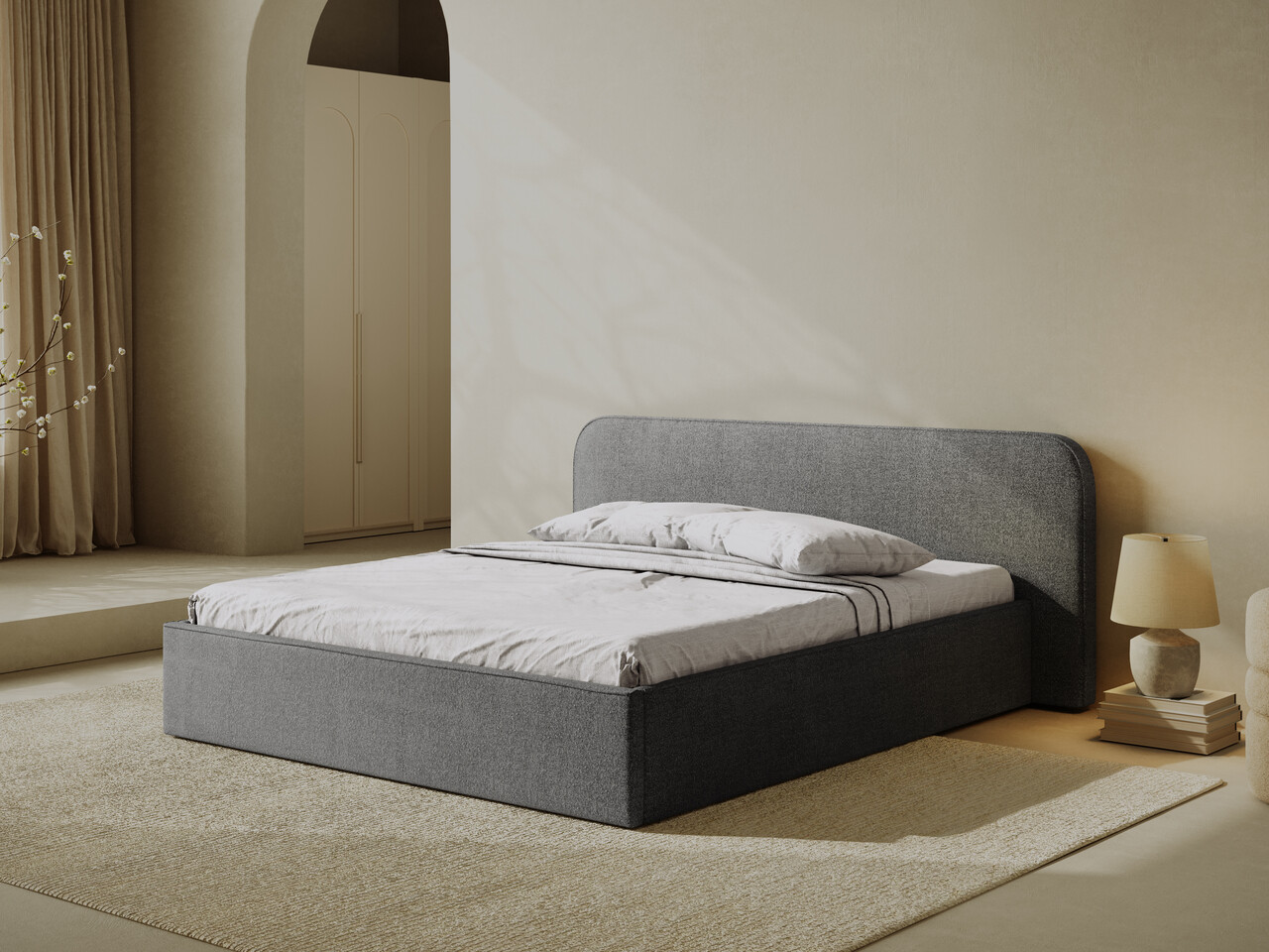 Pat tapitat cu somiera rabatabila si lada depozitare, 140x200 cm, Micadoni Home, Elizabeth-260, tesatura boucle, grafit