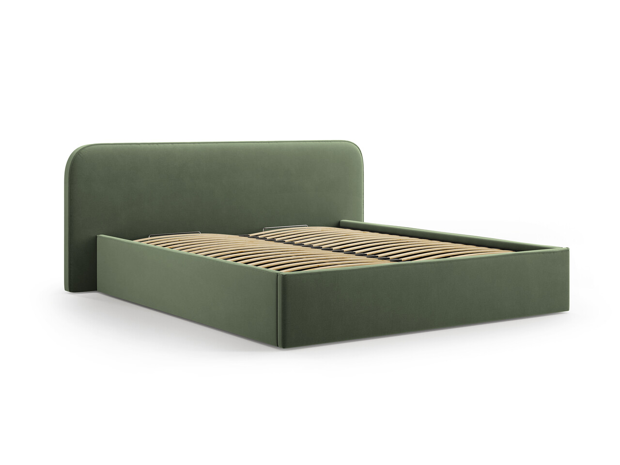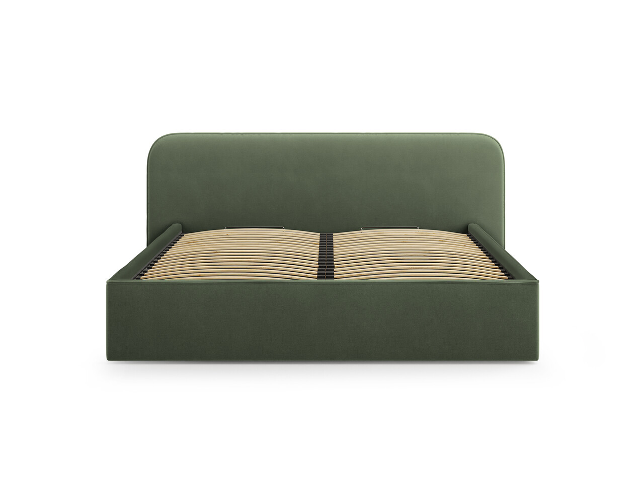 Pat tapitat cu somiera rabatabila si lada depozitare, 140x200 cm, Micadoni Home, Elizabeth-261, catifea, verde moss