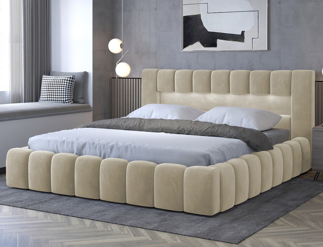 Un detaliu exclusivist este tablia cu iluminare LED care creeaza o atmosfera relaxanta si rafinata, transformand fiecare moment de odihna intr-o experienta deosebita. Imbinand modernitatea cu un finisaj elegant, patul Lamica reprezinta alegerea perfecta pentru cei care apreciaza atat stilul, cat si confortul.