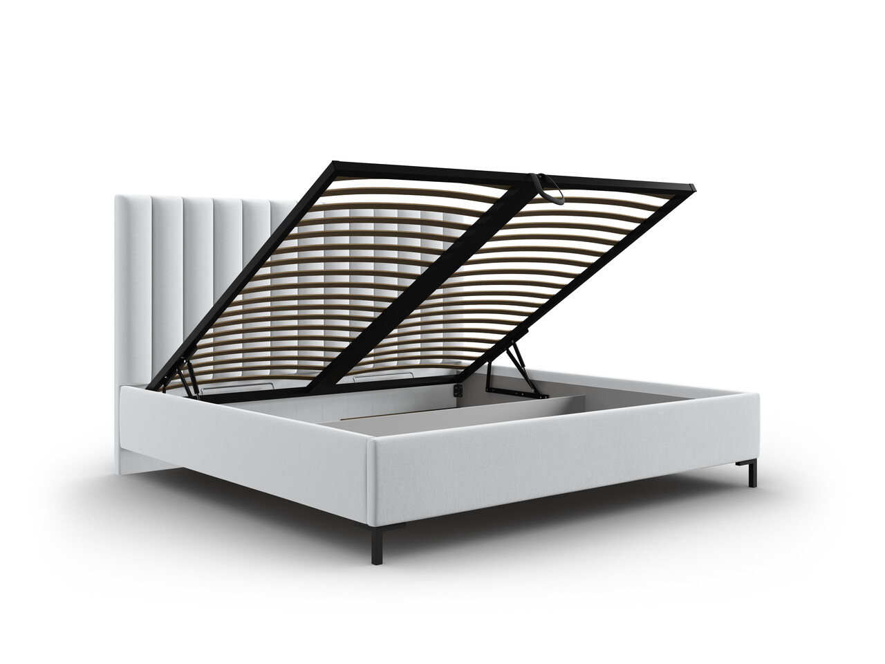 Pat tapitat cu somiera rabatabila si lada depozitare, 140x200 cm, Windsor & Co, Apollo, tesatura structurata, gri deschis