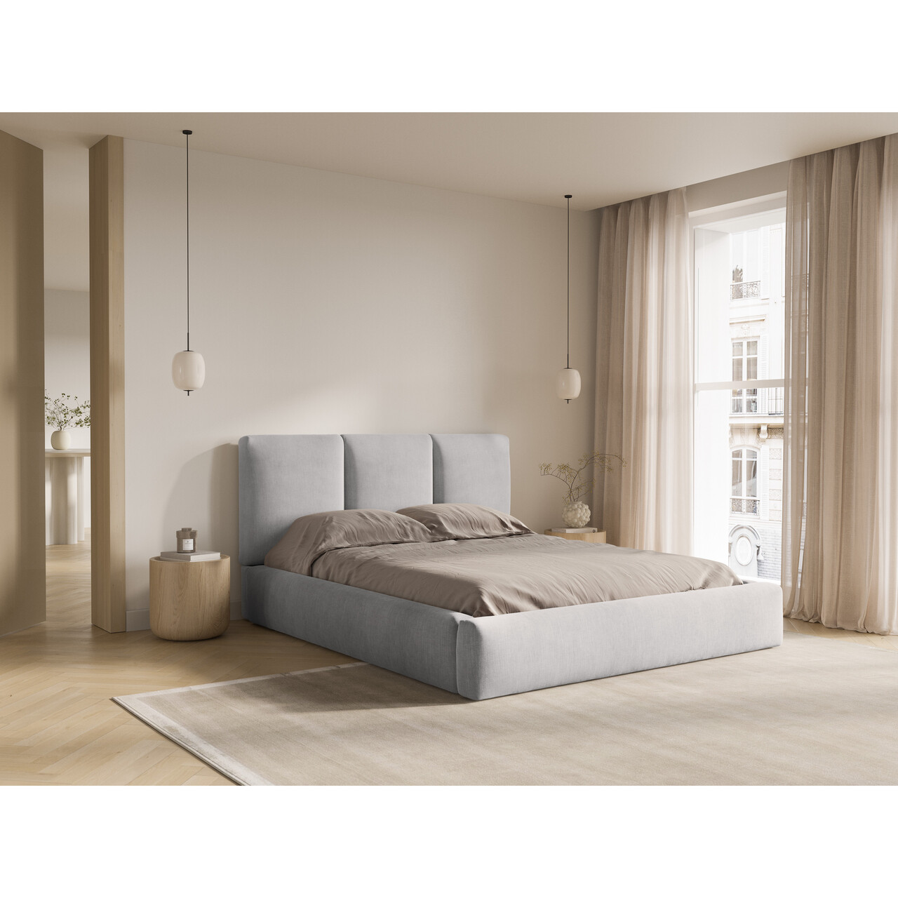 Pat tapitat cu somiera rabatabila si lada depozitare, 140x200 cm, Windsor & Co, Horizon, tesatura chenille, gri deschis