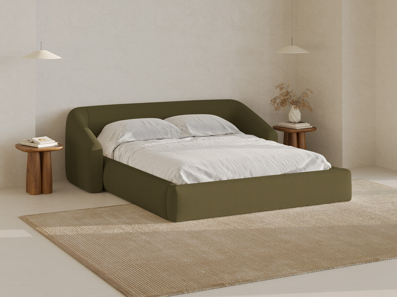 Pat tapitat cu somiera rabatabila si lada depozitare, 140x200 cm, Windsor & Co, Halo, tesatura structurata, verde