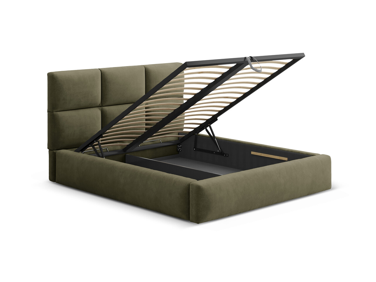 Pat tapitat cu somiera rabatabila si lada depozitare, 140x200 cm, Windsor & Co, Libera, catifea, verde