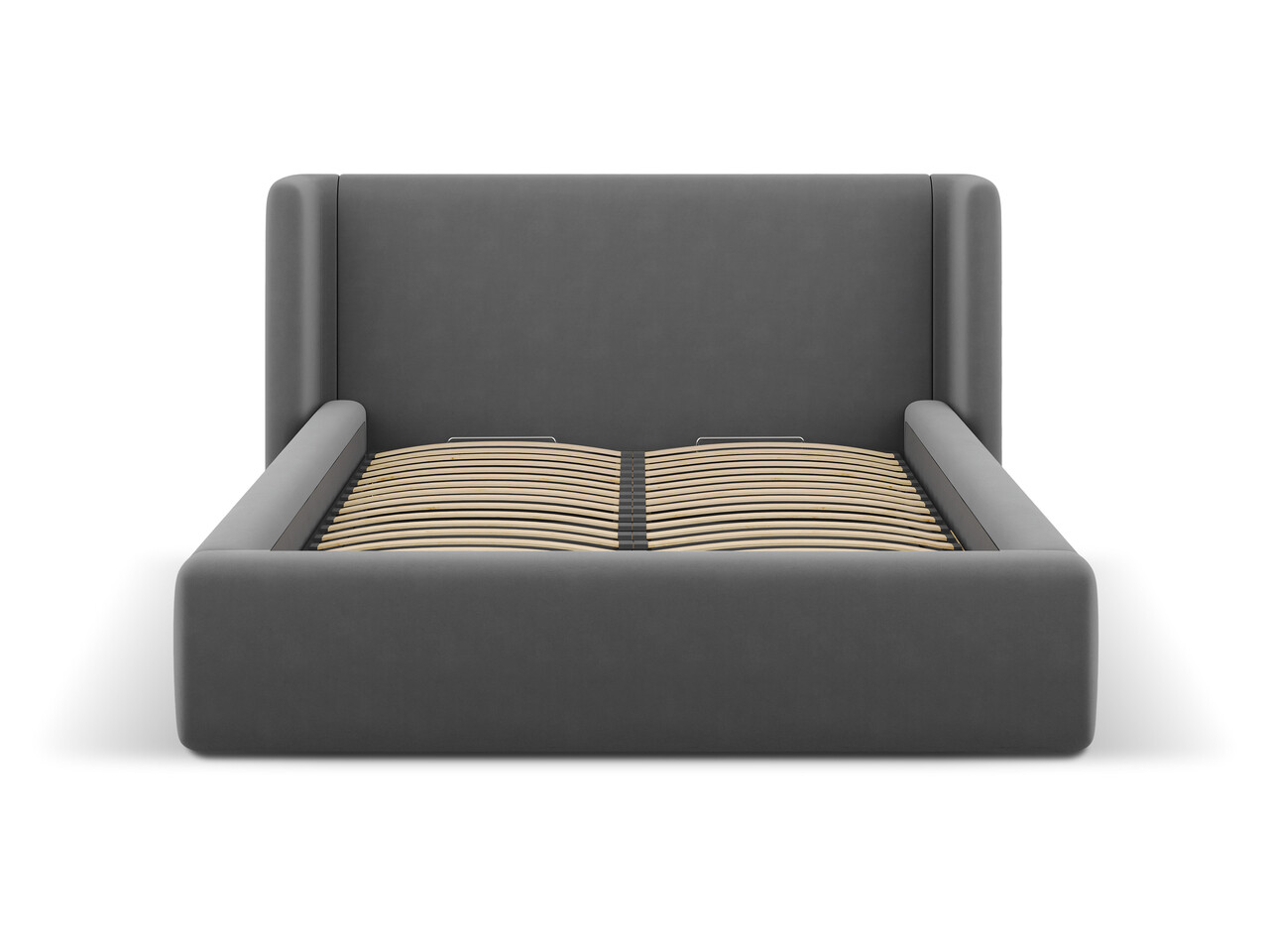 Pat tapitat cu somiera rabatabila si lada depozitare, 140x200 cm, Windsor & Co, Jason, catifea, gri
