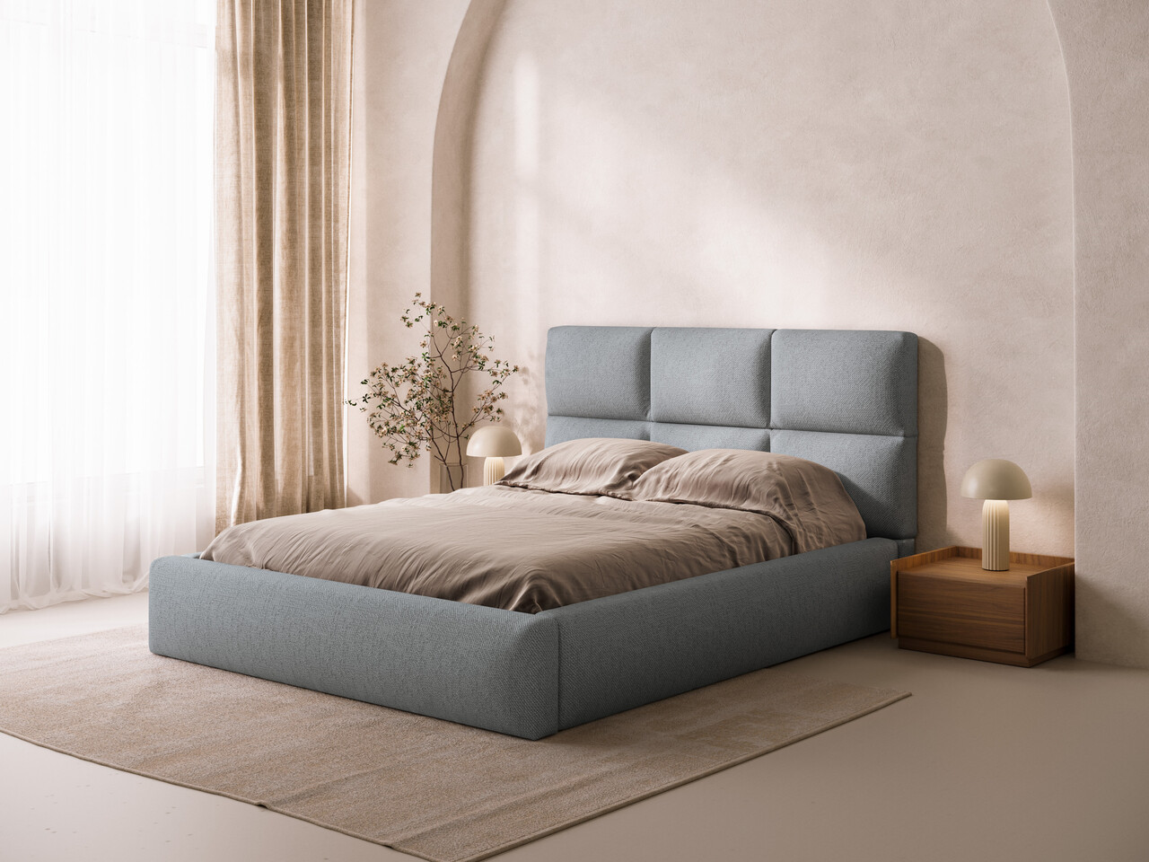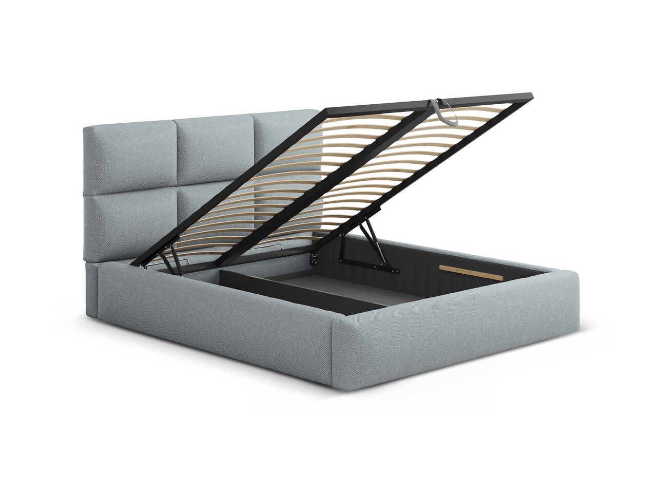 Pat tapitat cu somiera rabatabila si lada depozitare, 140x200 cm, Windsor & Co, Libera, tesatura structurata, gri platina