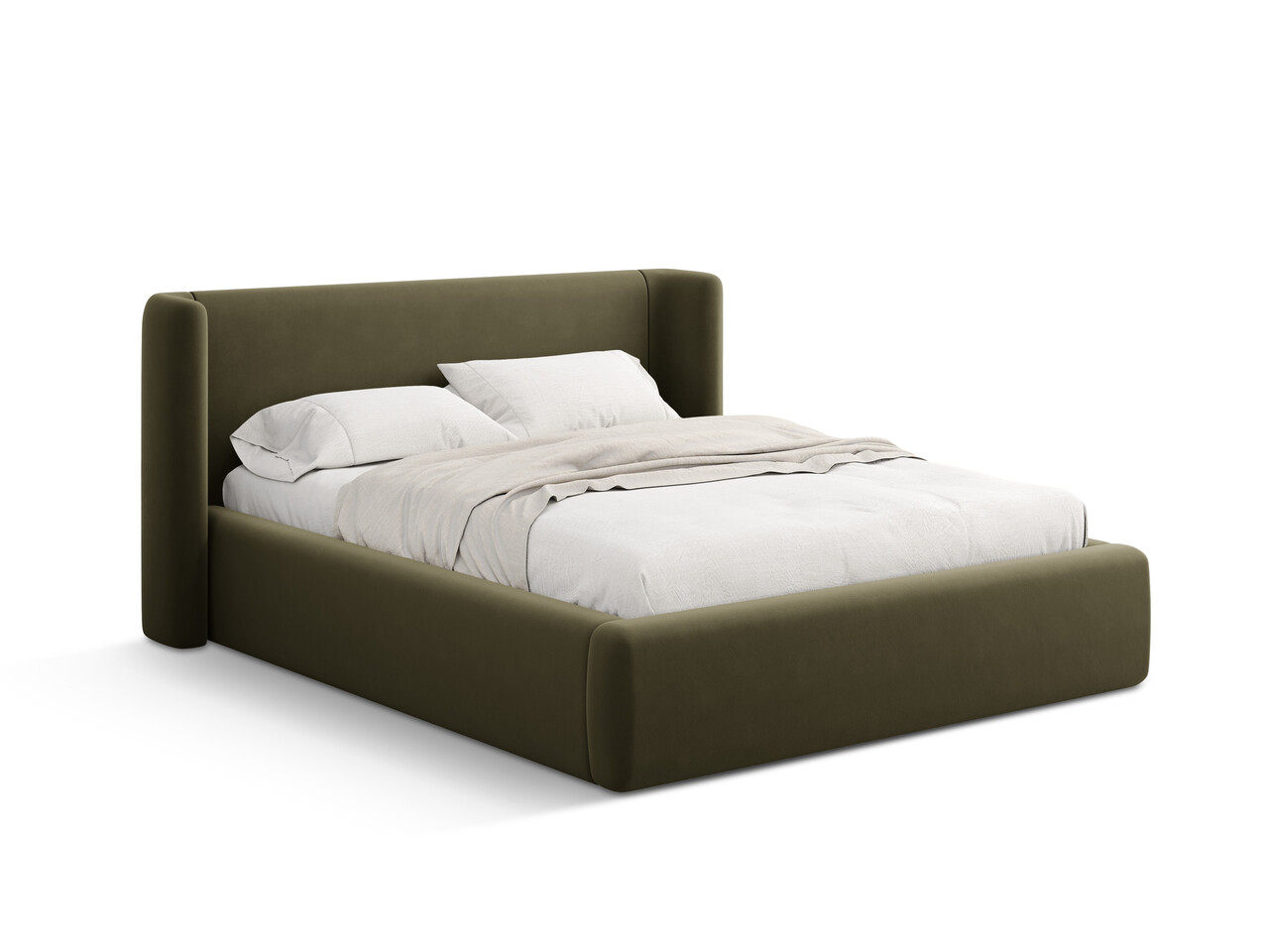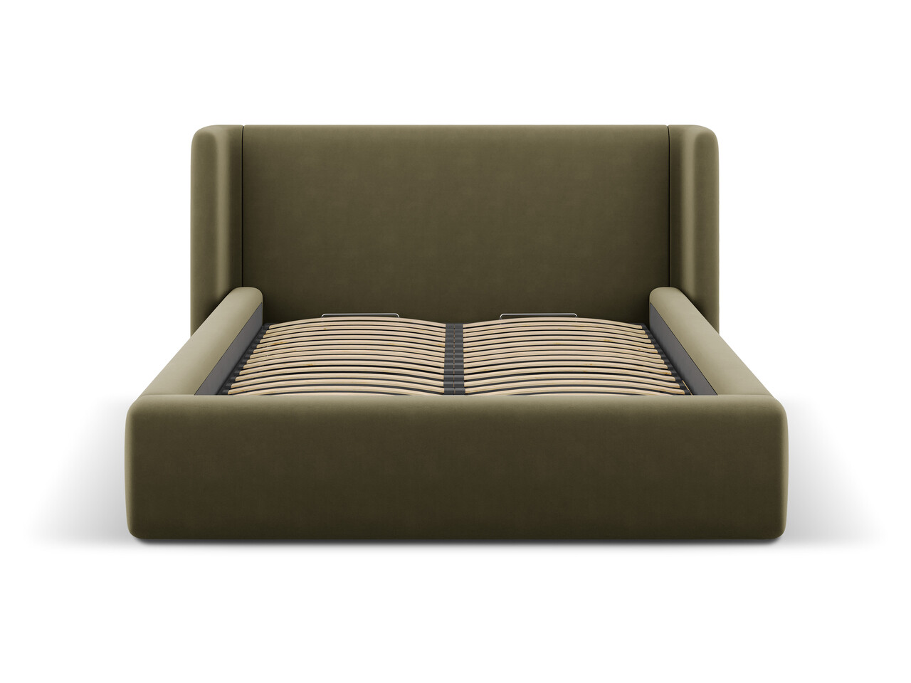 Pat tapitat cu somiera rabatabila si lada depozitare, 140x200 cm, Windsor & Co, Jason, catifea, verde