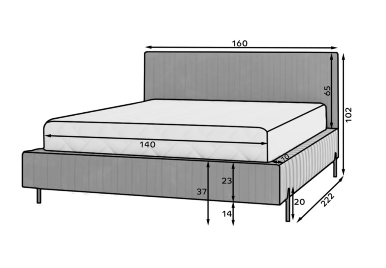 Pat tapitat cu somiera rabatabila si lada depozitare, 140x200 cm, ELTAP, Plissa, metal/poliester, albastru deschis