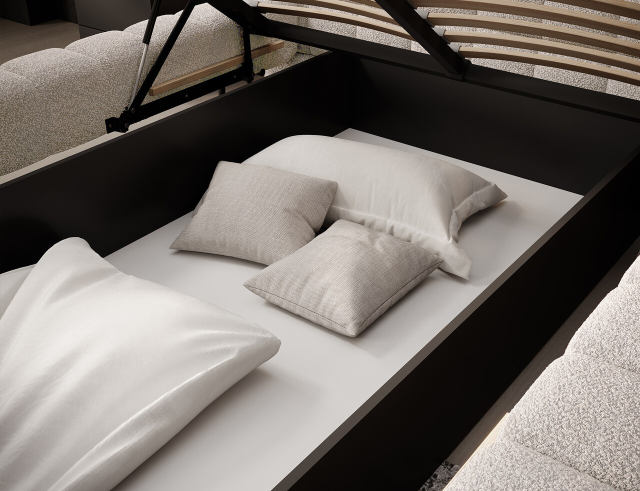 Pat tapitat cu somiera rabatabila si lada depozitare, 140x200 cm, ELTAP, Magentta, metal/poliester, bej deschis