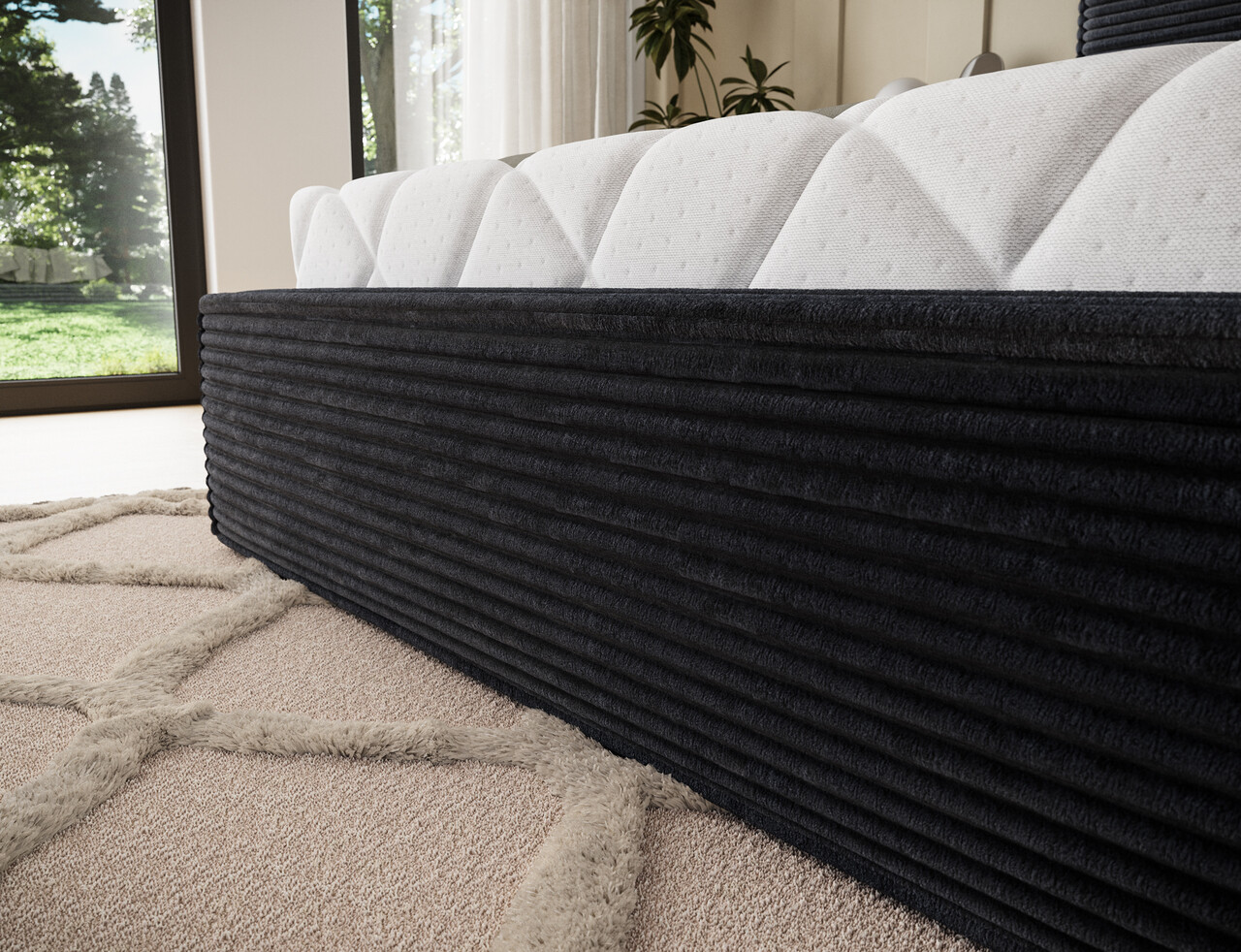 Pat tapitat cu somiera rabatabila si lada depozitare, 140x200 cm, ELTAP, Pesillo, metal/poliester, negru