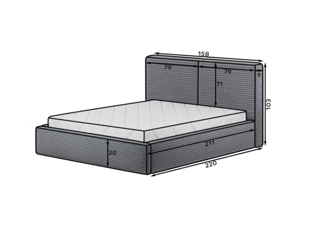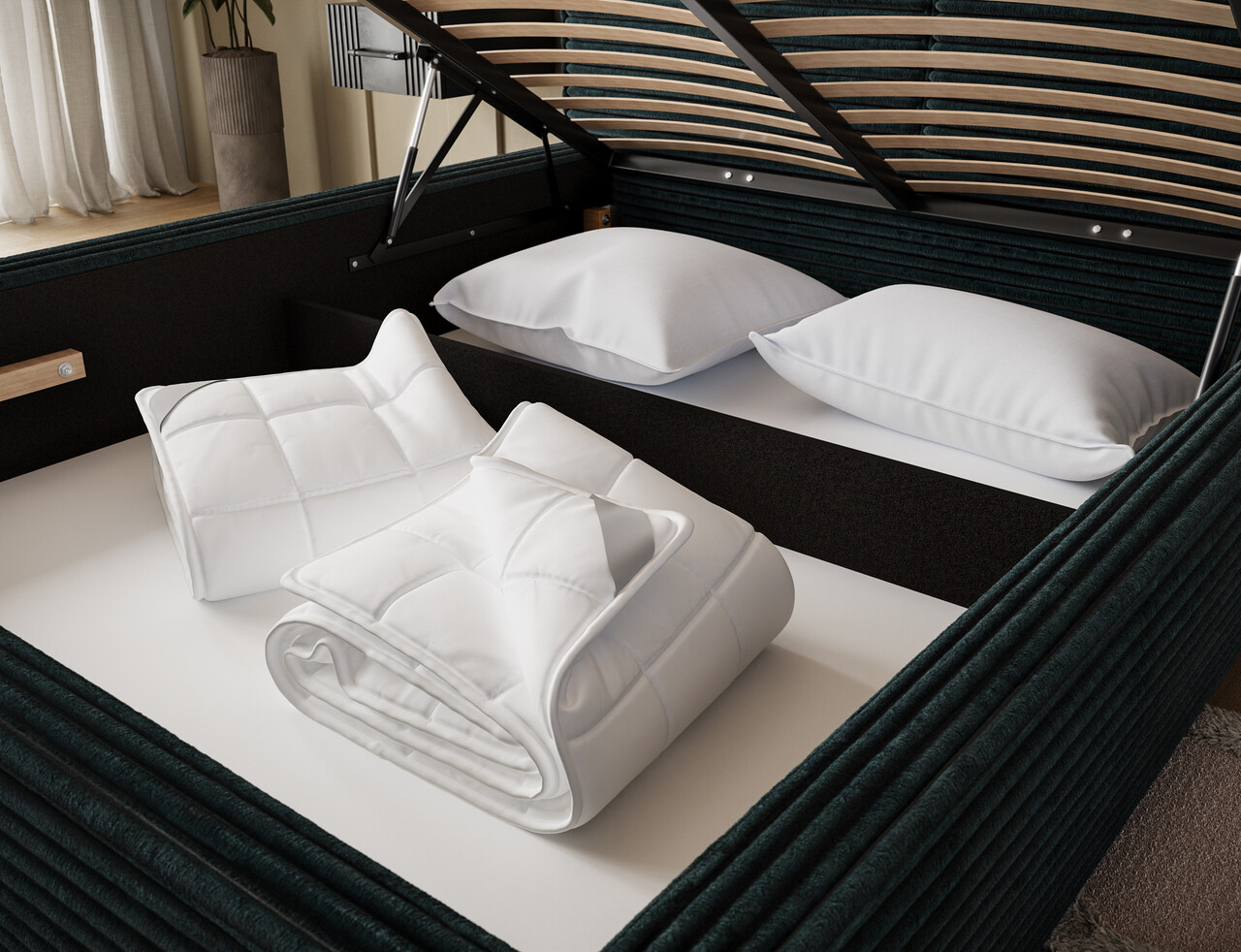 Pat tapitat cu somiera rabatabila si lada depozitare, 140x200 cm, ELTAP, Pesillo, metal/poliester, verde inchis