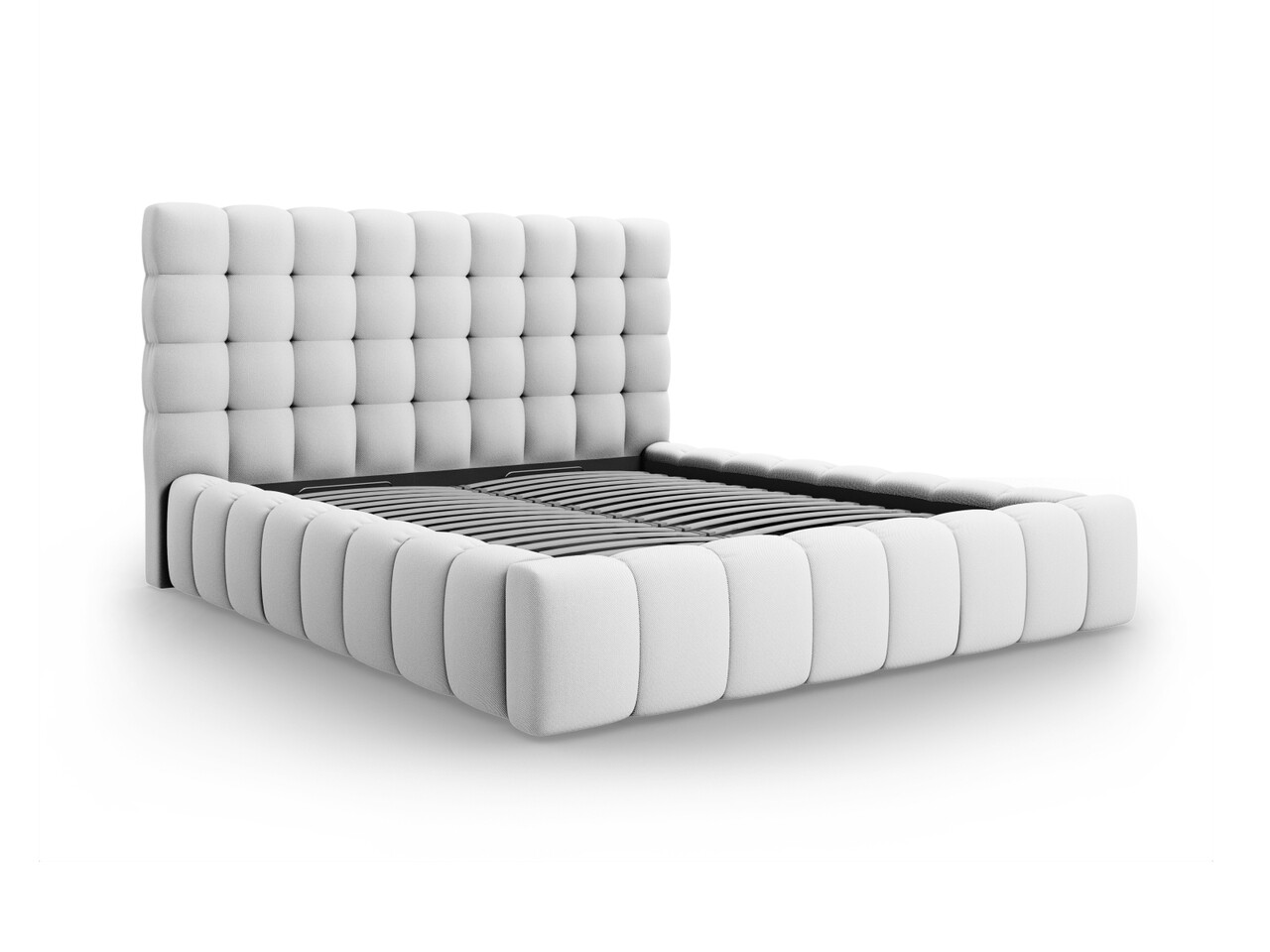 Pat tapitat cu somiera rabatabila si lada depozitare, 160x200 cm, Micadoni Home, Mamaia-170, tesatura structurata, gri deschis