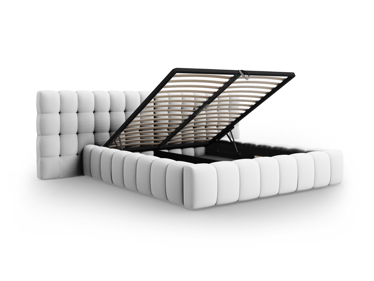Pat tapitat cu somiera rabatabila si lada depozitare, 160x200 cm, Micadoni Home, Mamaia-170, tablie dubla, tesatura structurata, gri deschis