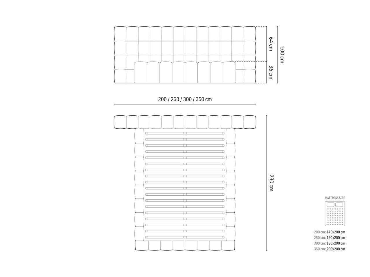 Material structura: cadru metalic cu lamele flexibile din placaj, elemente din lemn natural, tesatura tehnica netesuta, placa din lemn prelucrat, accesorii metalice pentru mobilier, picioare din plastic negru.