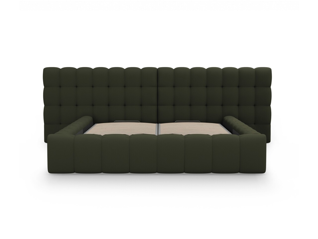 Pat tapitat cu somiera rabatabila si lada depozitare, 160x200 cm, Micadoni Home, Mamaia-170, tablie dubla, tesatura structurata, verde