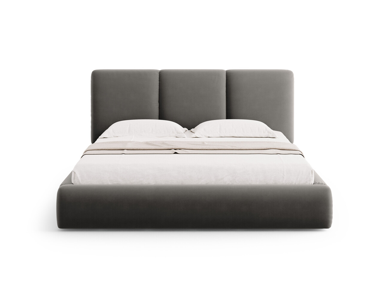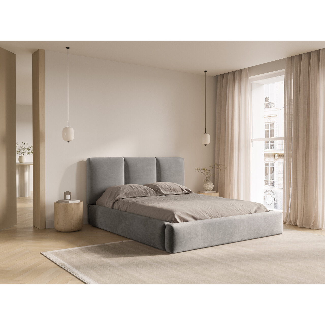 Pat tapitat cu somiera rabatabila si lada depozitare, 160x200 cm, Windsor & Co, Horizon, catifea, gri deschis