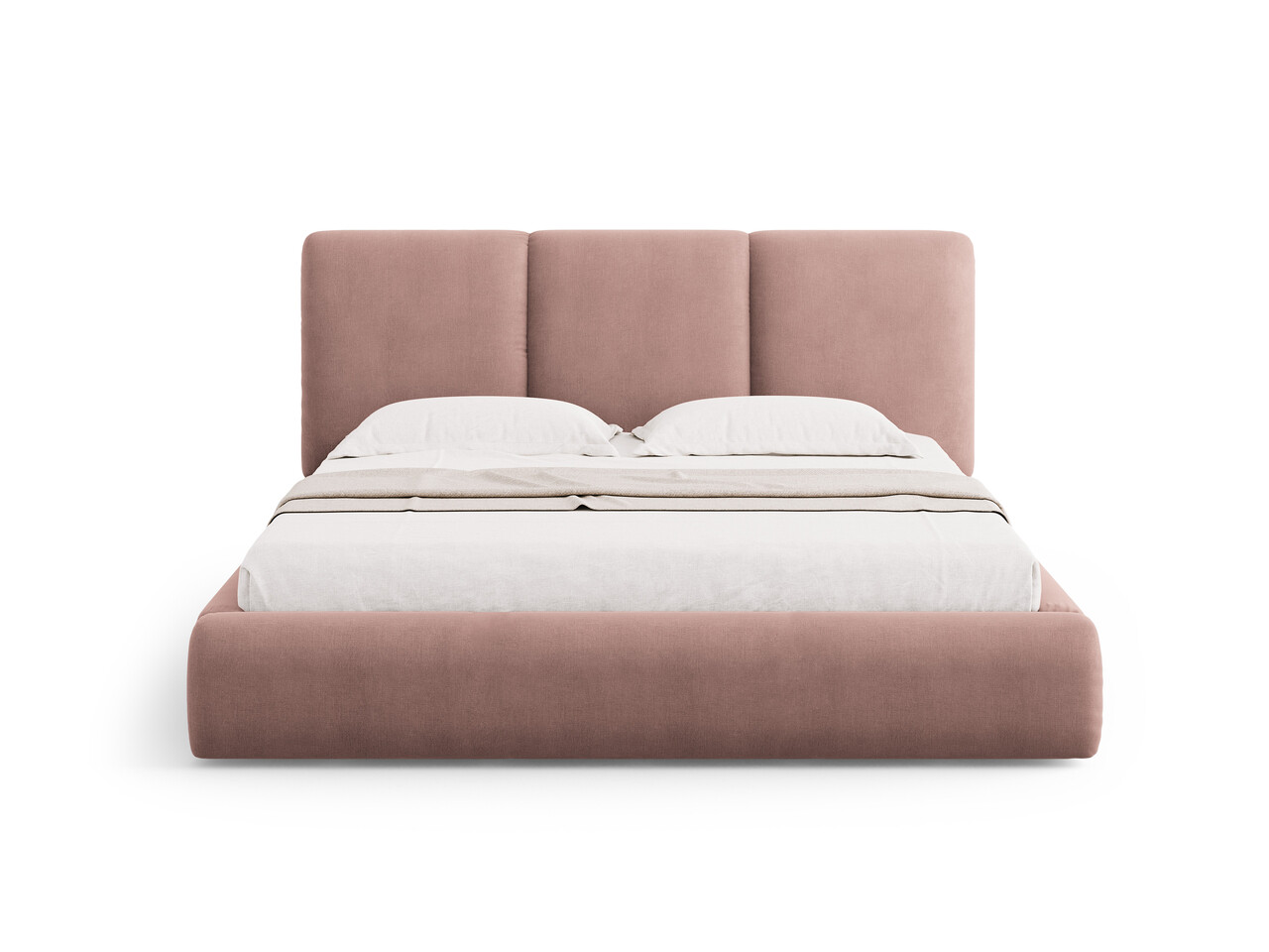 Pat tapitat cu somiera rabatabila si lada depozitare, 160x200 cm, Windsor & Co, Horizon, tesatura chenille, roz