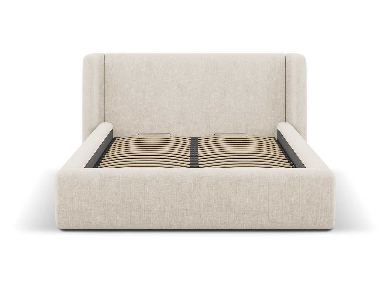 Pat tapitat cu somiera rabatabila si lada depozitare, 160x200 cm, Windsor & Co, Jason, tesatura structurata, bej deschis