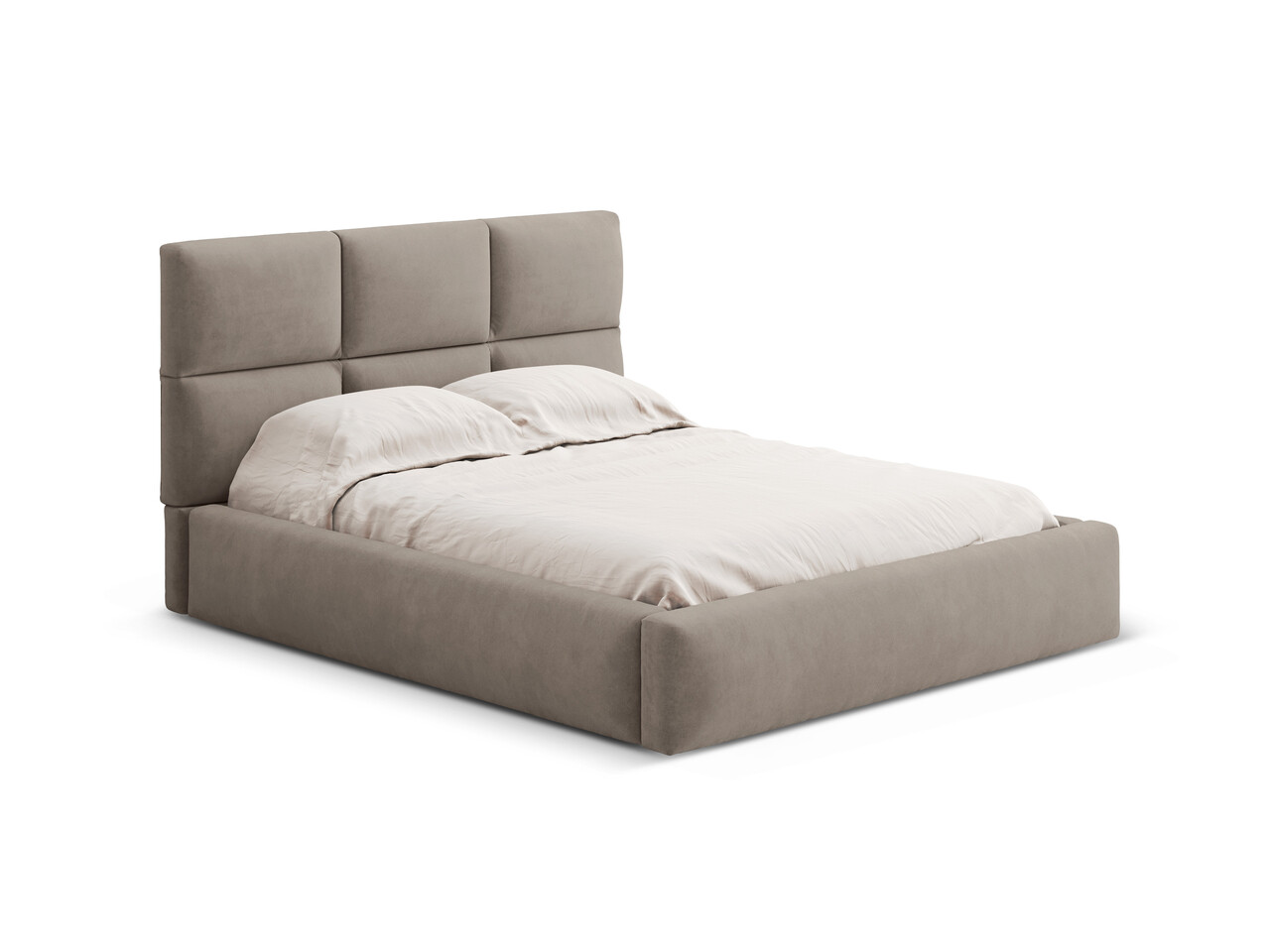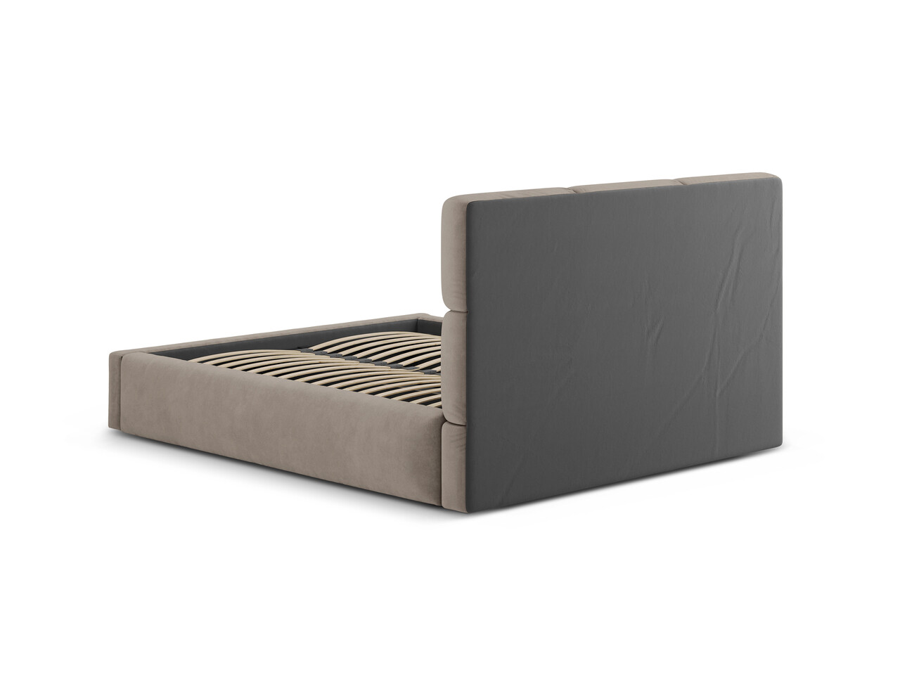 Pat tapitat cu somiera rabatabila si lada depozitare, 160x200 cm, Windsor & Co, Libera, catifea, cappuccino