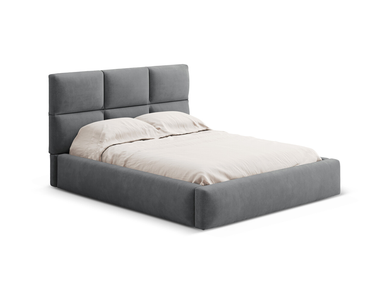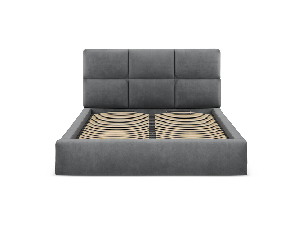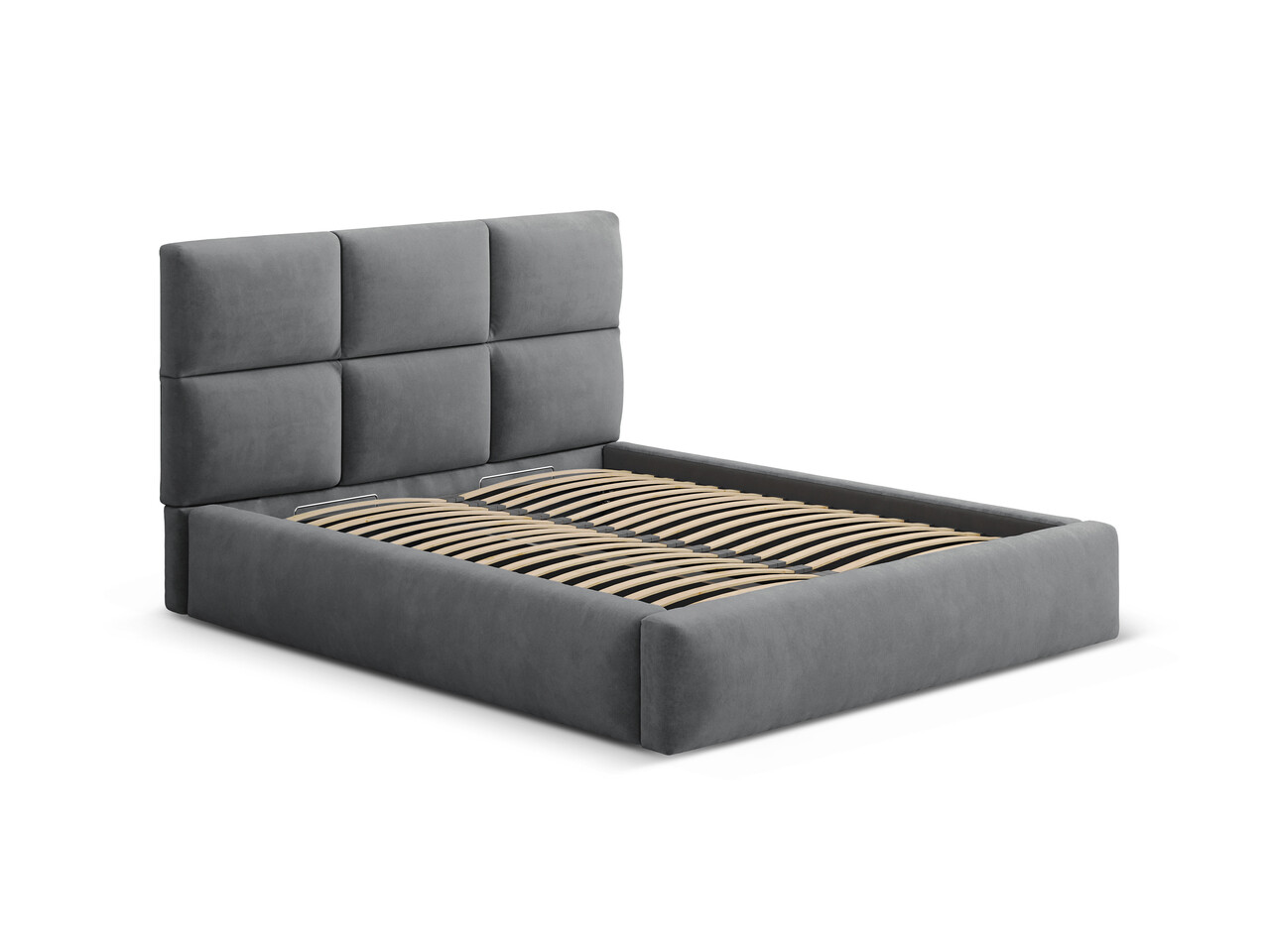 Pat tapitat cu somiera rabatabila si lada depozitare, 160x200 cm, Windsor & Co, Libera, catifea, gri