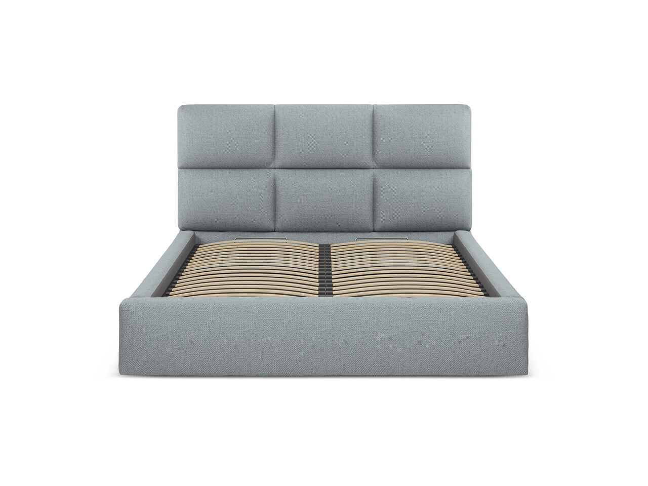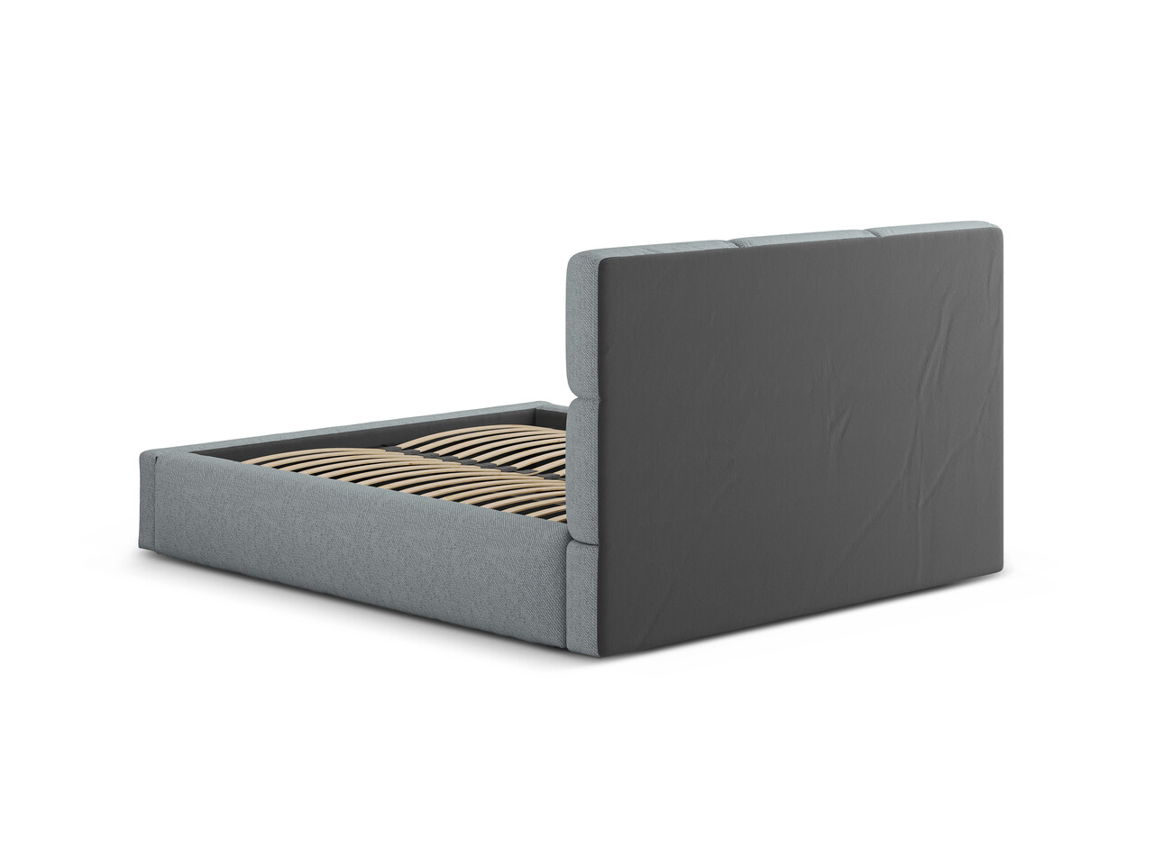 Pat tapitat cu somiera rabatabila si lada depozitare, 160x200 cm, Windsor & Co, Libera, tesatura structurata, gri platina