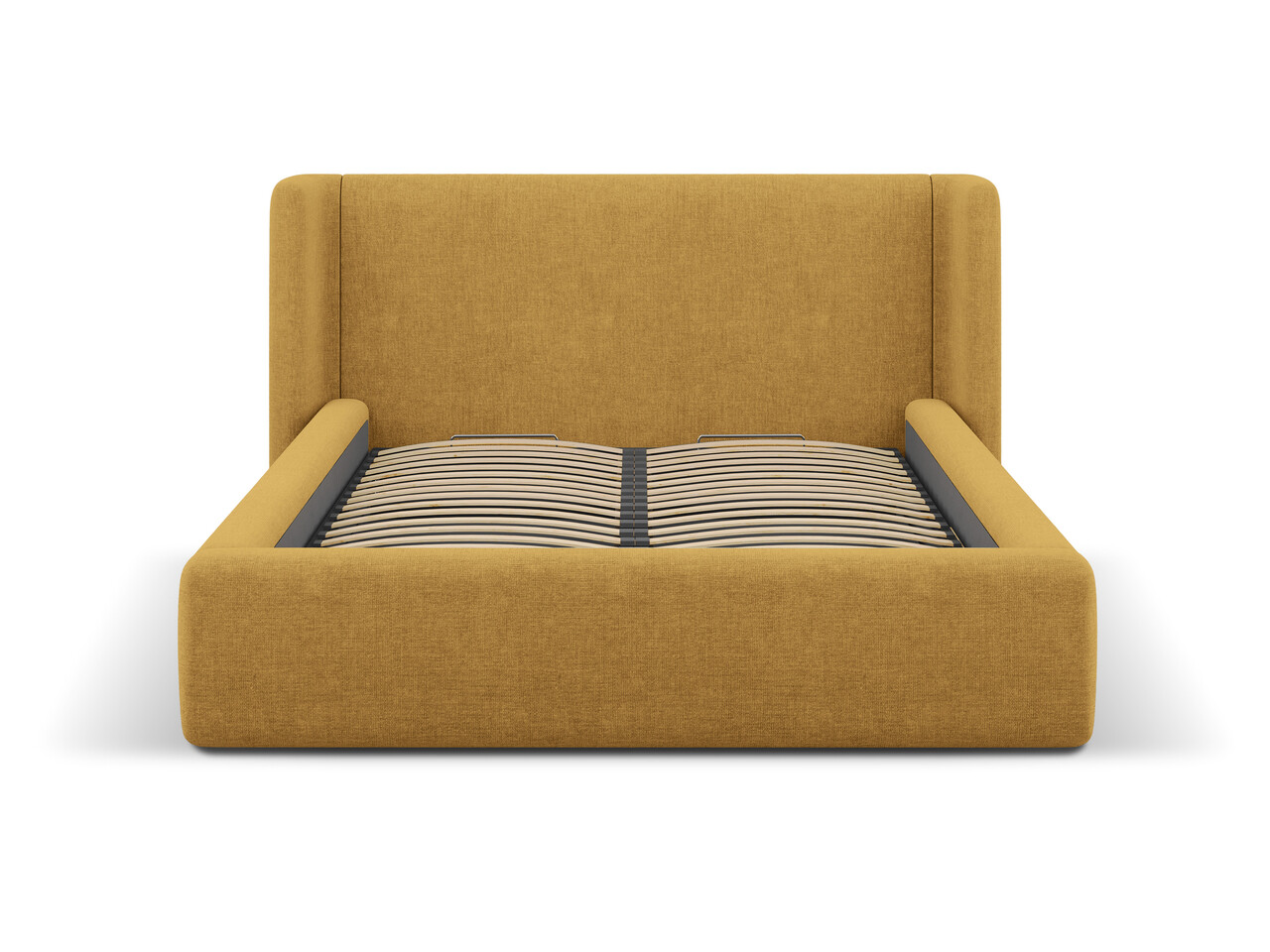 Pat tapitat cu somiera rabatabila si lada depozitare, 160x200 cm, Windsor & Co, Jason, tesatura structurata, verde oliv deschis