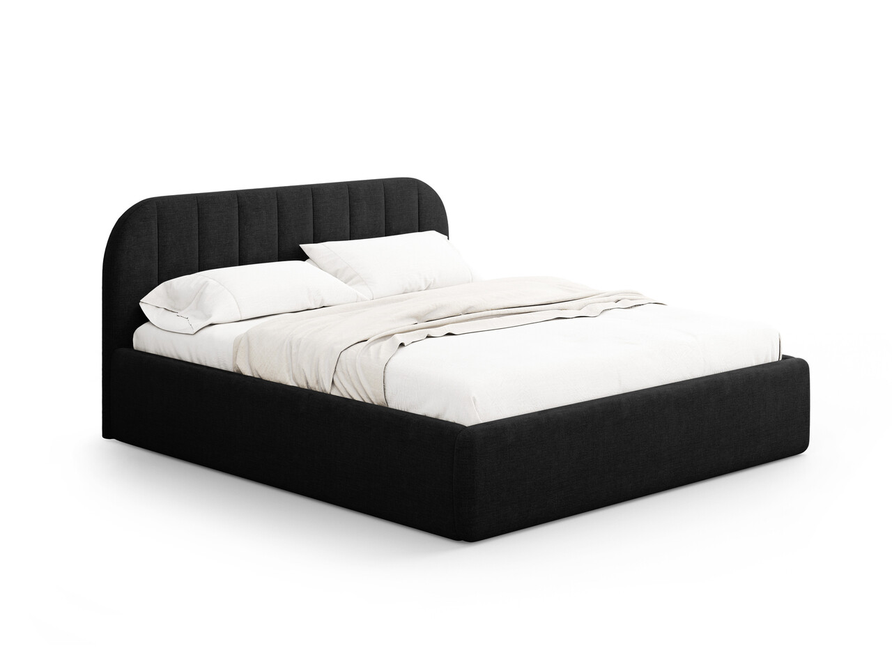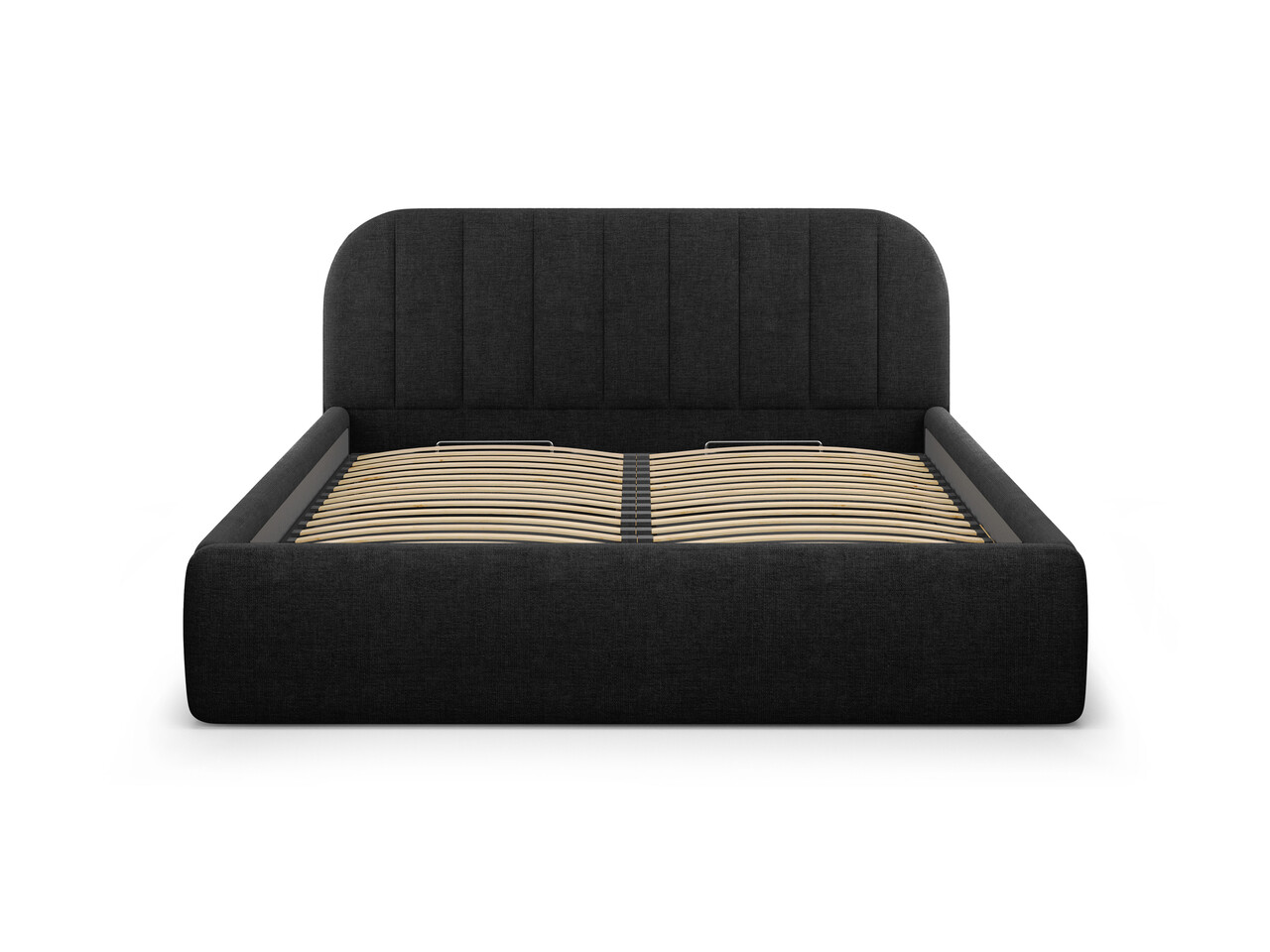 Pat tapitat cu somiera rabatabila si lada depozitare, 160x200 cm, Windsor & Co, Juno, tesatura structurata, negru