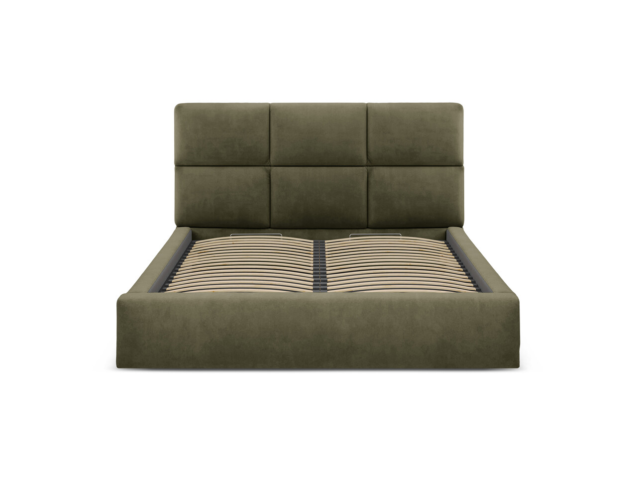 Pat tapitat cu somiera rabatabila si lada depozitare, 160x200 cm, Windsor & Co, Libera, catifea, verde
