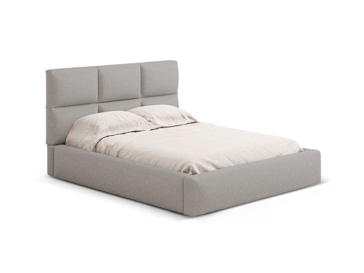 Pat tapitat cu somiera rabatabila si lada depozitare, 160x200 cm, Windsor & Co, Libera, tesatura structurata, bej inchis