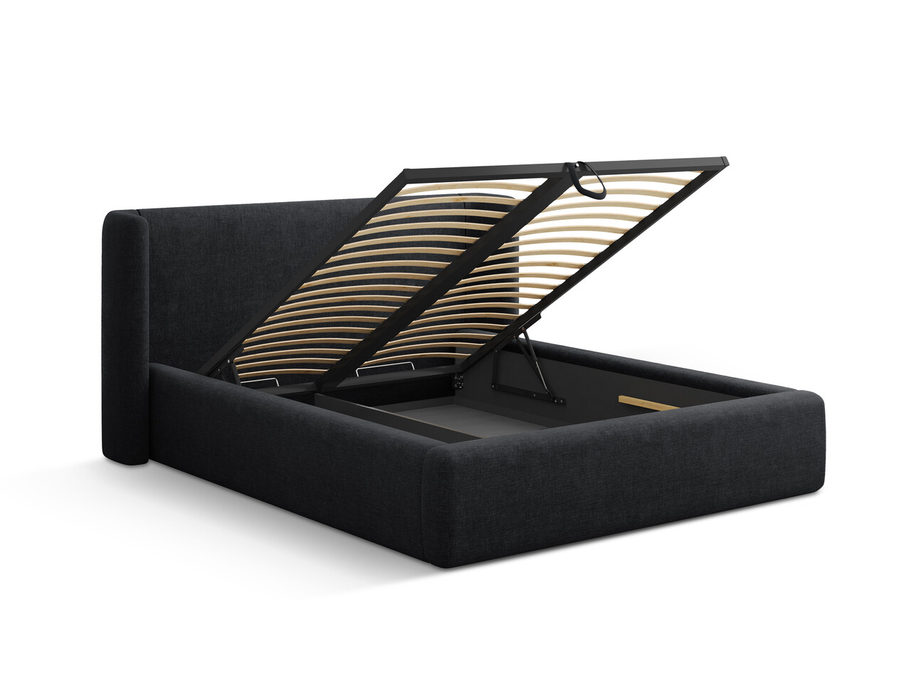 Pat tapitat cu somiera rabatabila si lada depozitare, 160x200 cm, Windsor & Co, Jason, tesatura structurata, negru