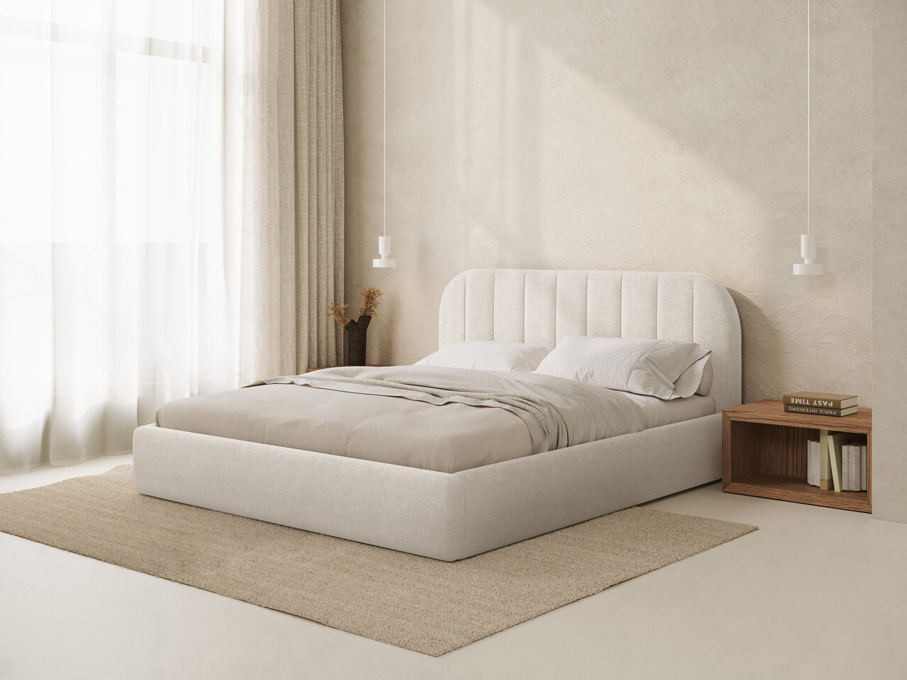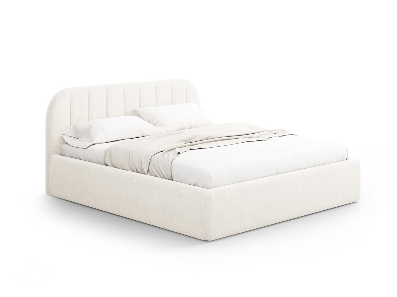 Pat tapitat cu somiera rabatabila si lada depozitare, 160x200 cm, Windsor & Co, Juno, tesatura structurata, ivoriu