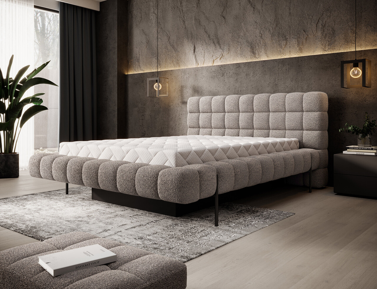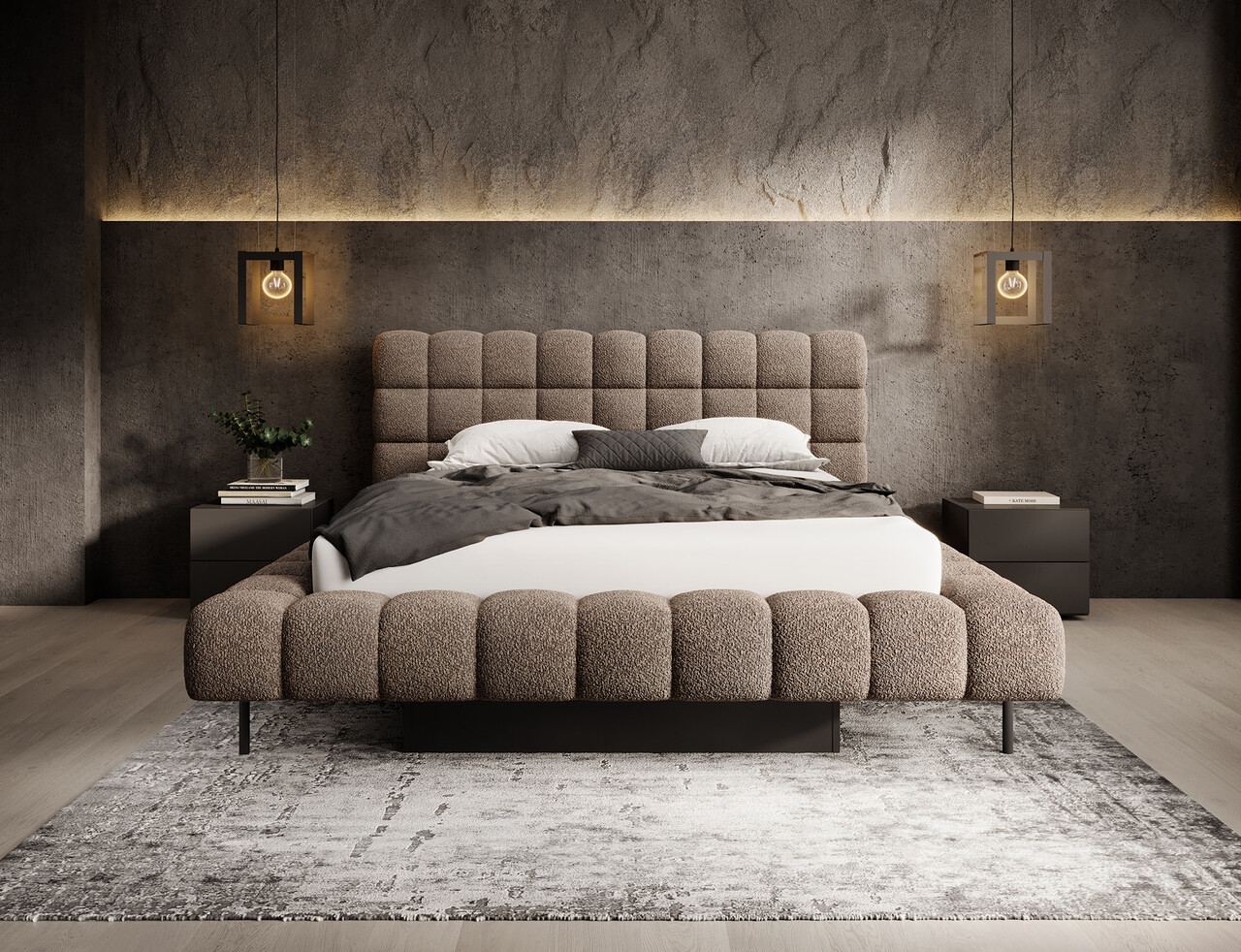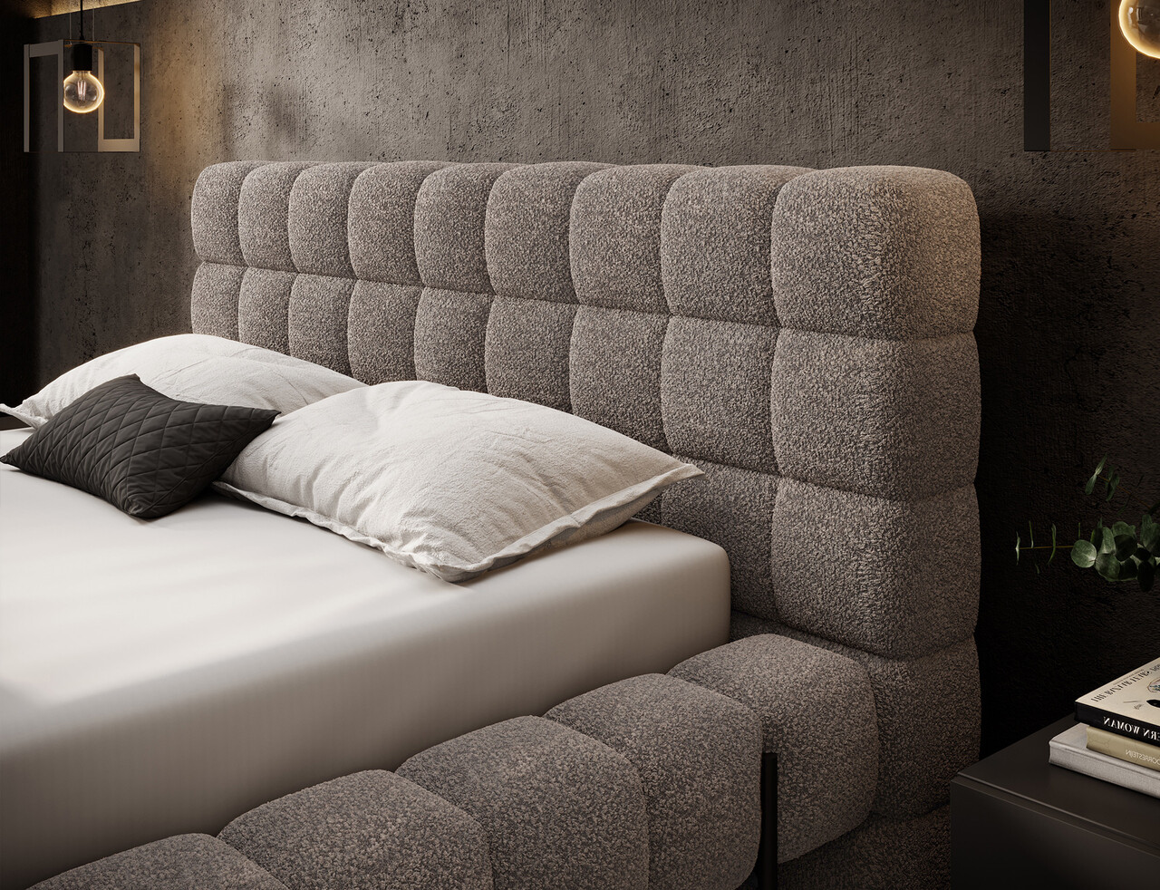 Pat tapitat cu somiera rabatabila si lada depozitare, 160x200 cm, ELTAP, Magentta, metal/poliester, maro
