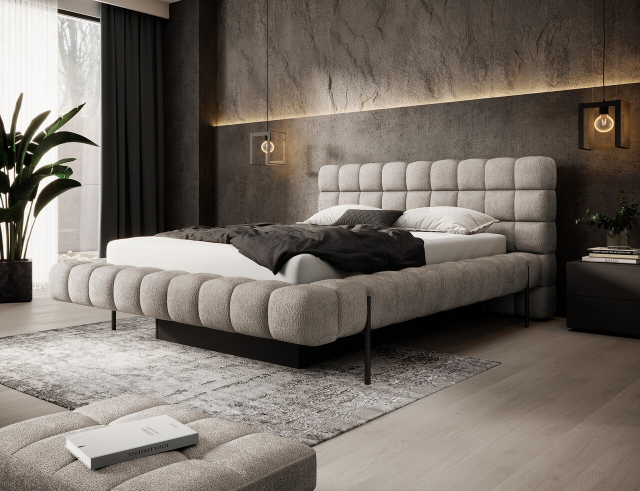 Pat tapitat cu somiera rabatabila si lada depozitare, 160x200 cm, ELTAP, Magentta, metal/poliester, bej inchis