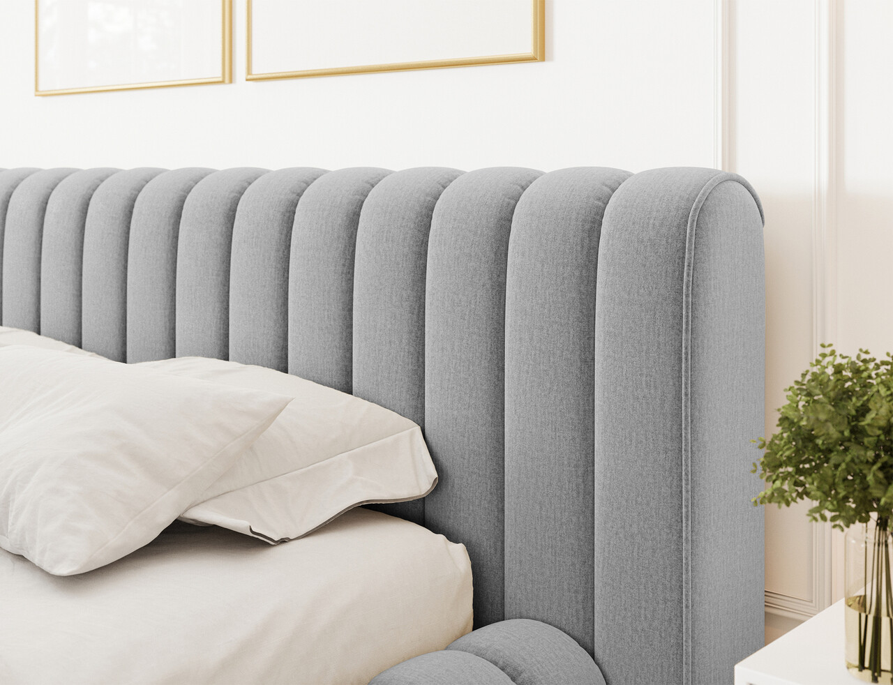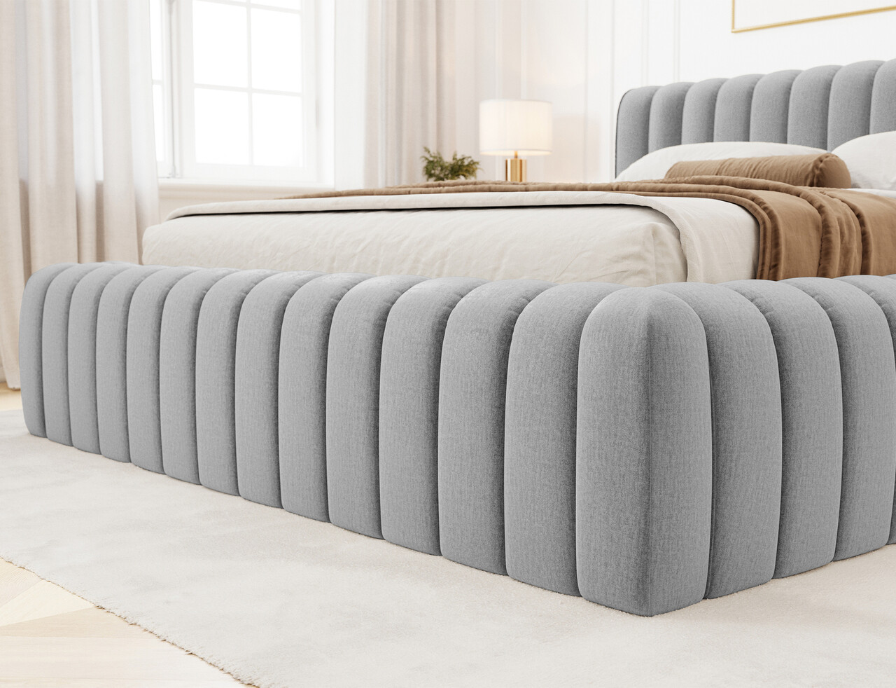 Pat tapitat cu somiera rabatabila si lada depozitare, 160x200 cm, ELTAP, 85MO-1.6, Carilla, metal/poliester, gri deschis