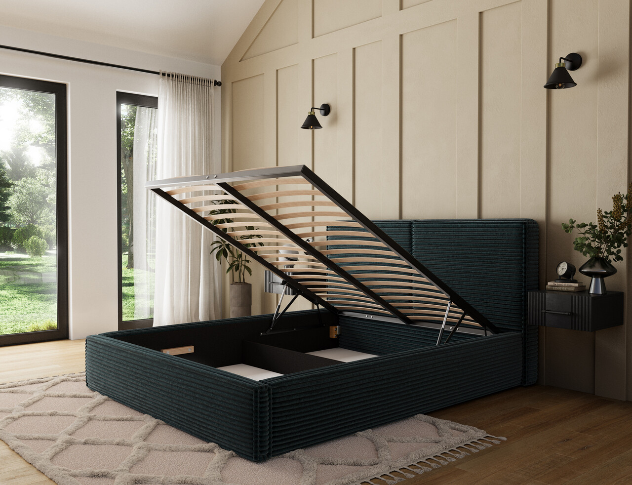 Pat tapitat cu somiera rabatabila si lada depozitare, 160x200 cm, ELTAP, Pesillo, metal/poliester, verde inchis