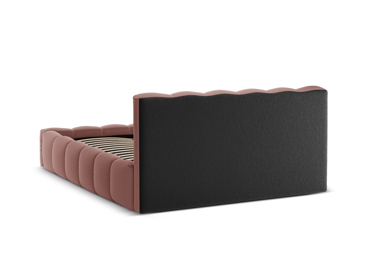 Pat tapitat cu somiera rabatabila si lada depozitare, 180x200 cm, Micadoni Home, Lupine-138, tesatura structurata chenille, roz inchis