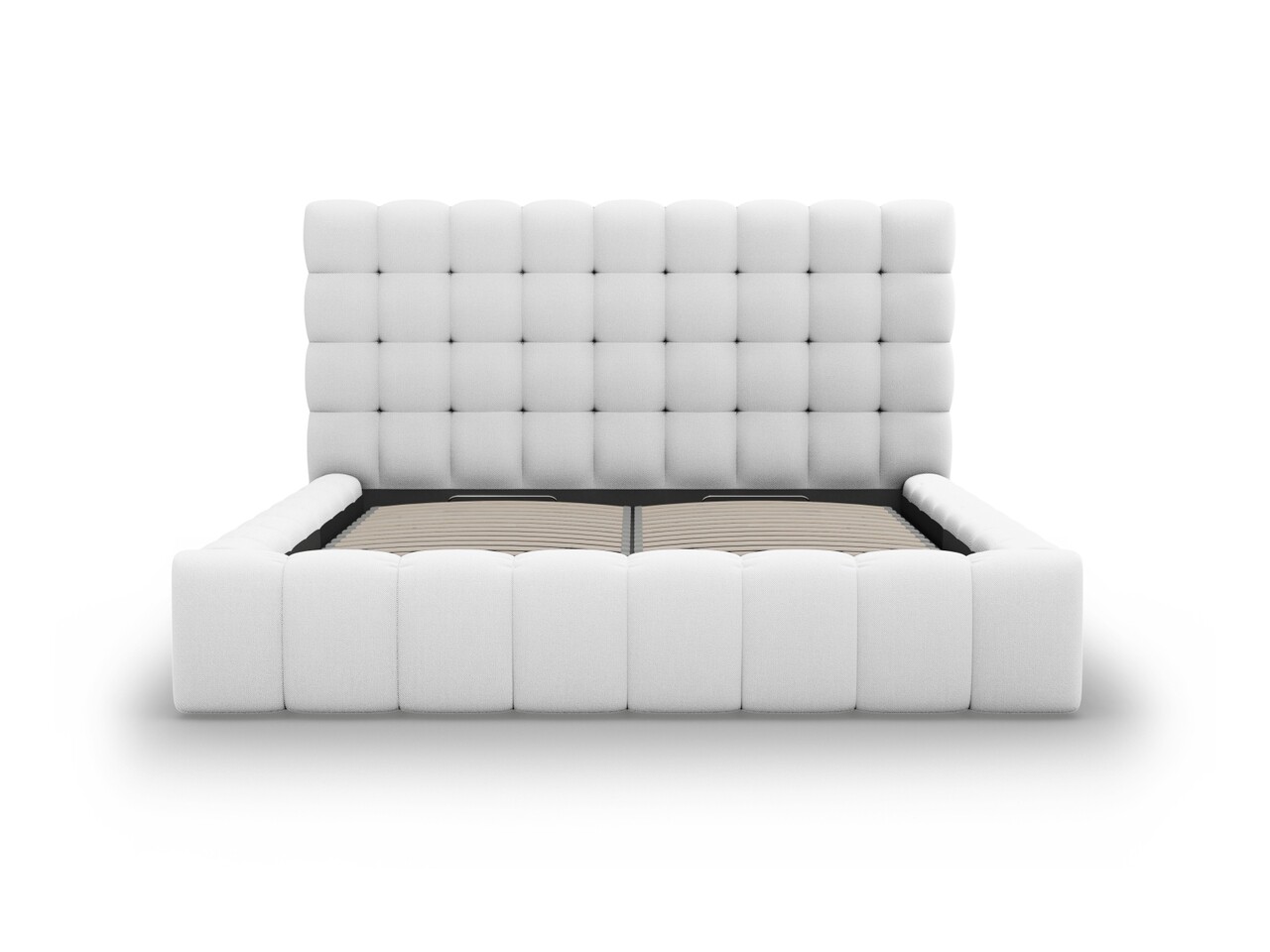 Pat tapitat cu somiera rabatabila si lada depozitare, 180x200 cm, Micadoni Home, Mamaia-170, tesatura structurata, gri deschis