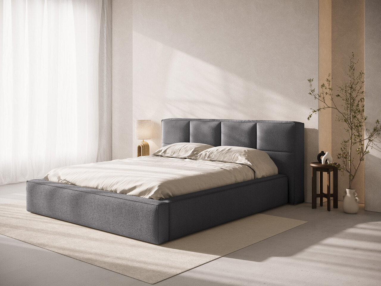 Pat tapitat cu somiera rabatabila si lada depozitare, 180x200 cm, Micadoni Home, Simon-206, tesatura boucle, grafit
