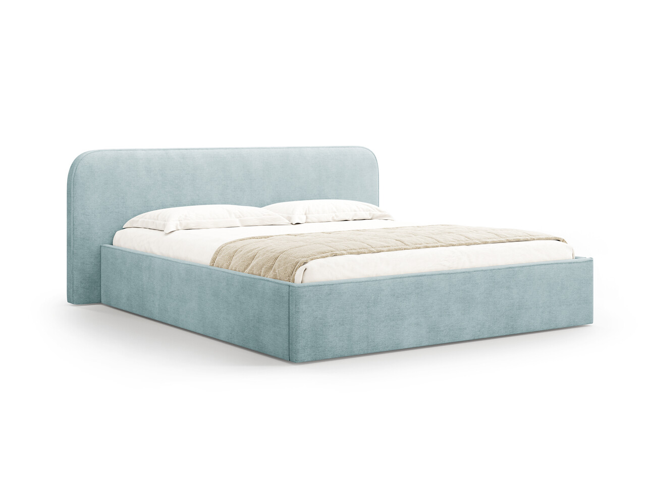 Pat tapitat cu somiera rabatabila si lada depozitare, 180x200 cm, Micadoni Home, Elizabeth-68, tesatura structurata chenille, verde menta