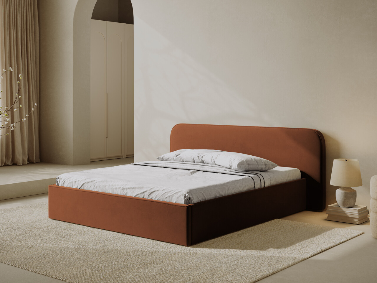 Pat tapitat cu somiera rabatabila si lada depozitare, 180x200 cm, Micadoni Home, Elizabeth-261, catifea, teracota
