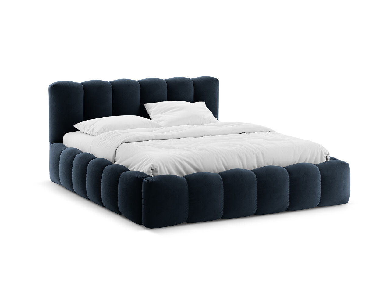 Pat tapitat cu somiera rabatabila si lada depozitare, 180x200 cm, Micadoni Home, Lupine-88, catifea, albastru inchis