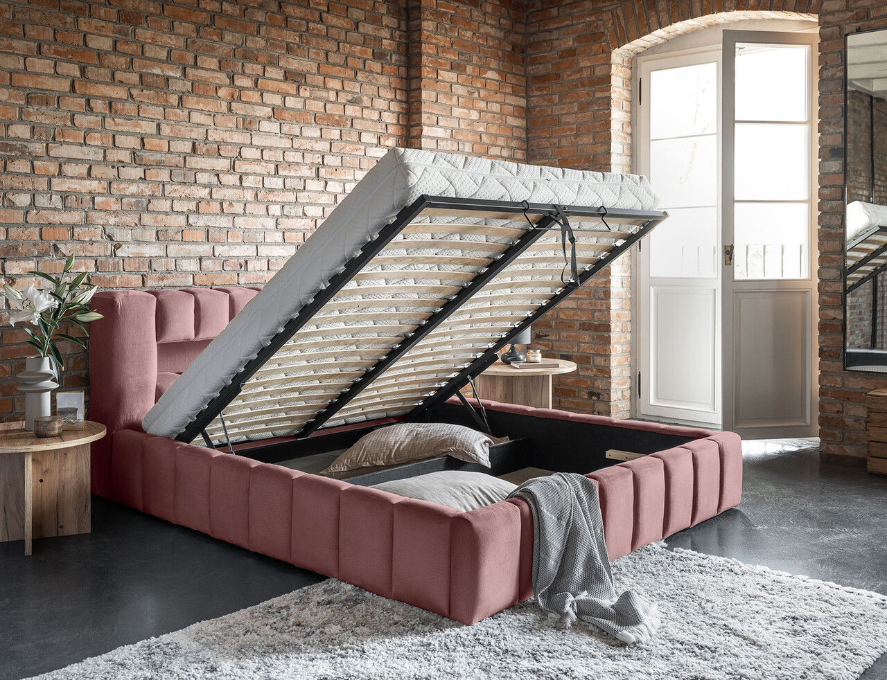 Pat tapitat cu somiera rabatabila si lada depozitare, 180x200 cm, ELTAP, Lamica, metal/poliester, roz