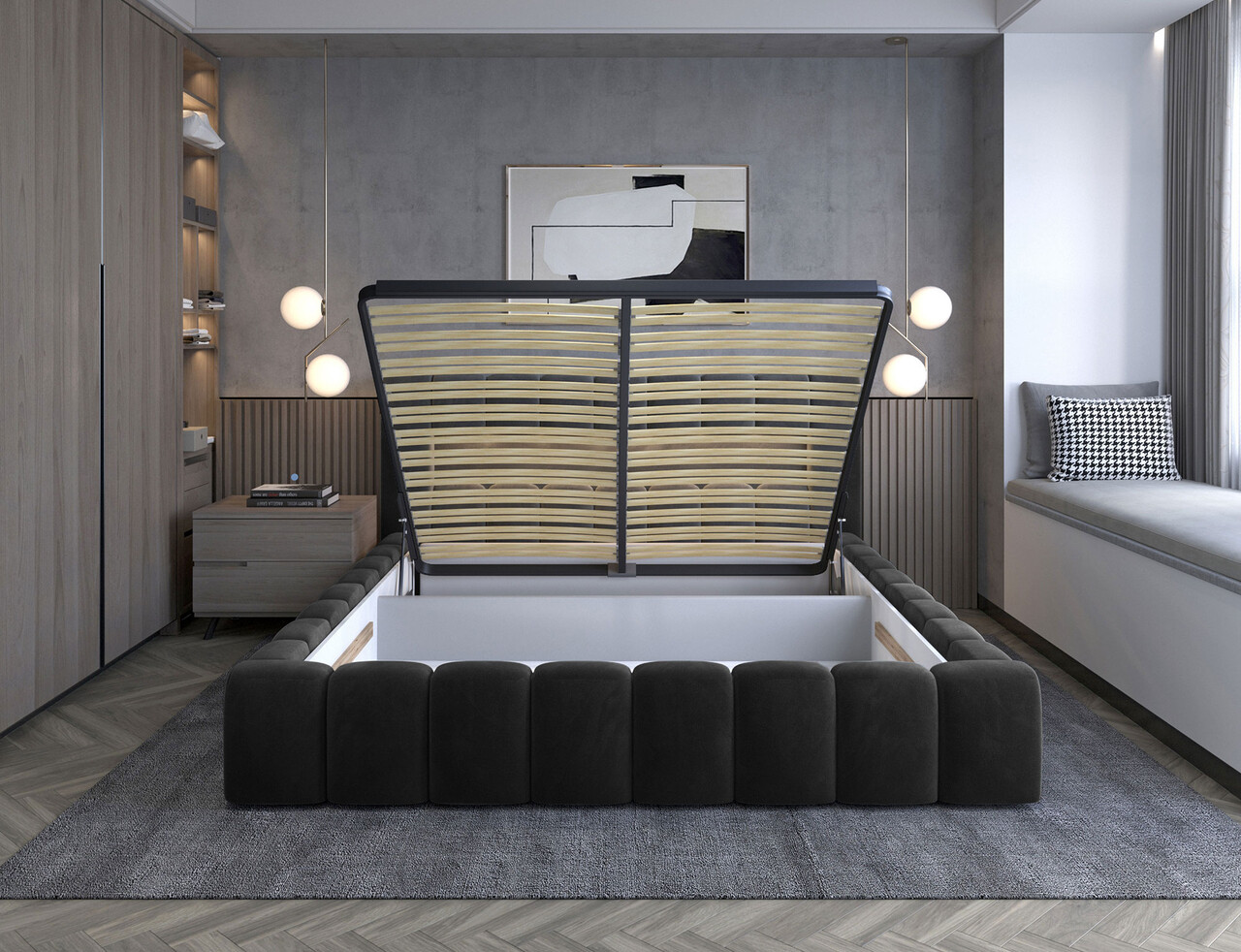Pat tapitat cu somiera rabatabila si lada depozitare, 180x200 cm, ELTAP, Lamica, metal/poliester, gri inchis