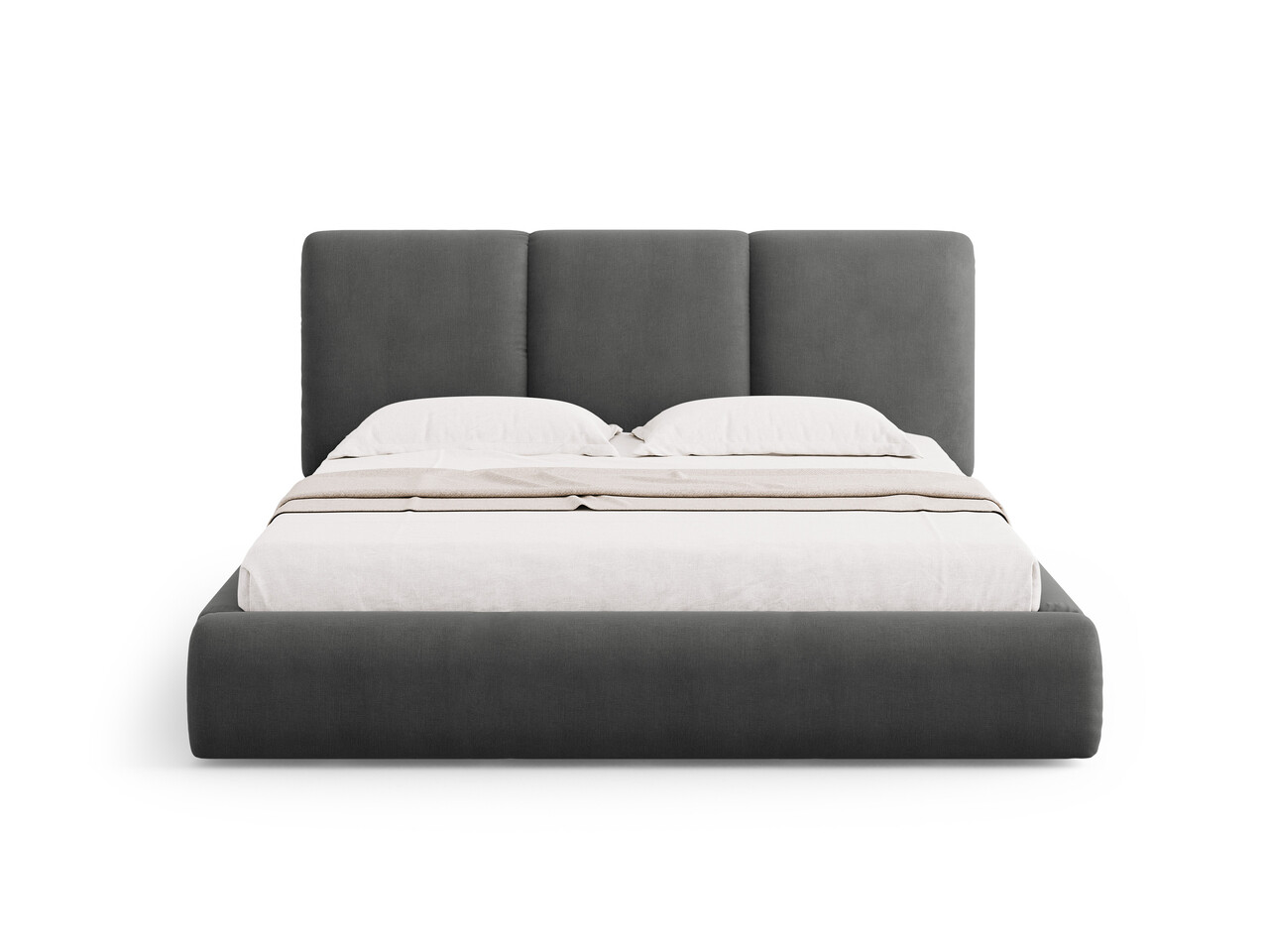 Pat tapitat cu somiera rabatabila si lada depozitare, 180x200 cm, Windsor & Co, Horizon, tesatura chenille, gri inchis