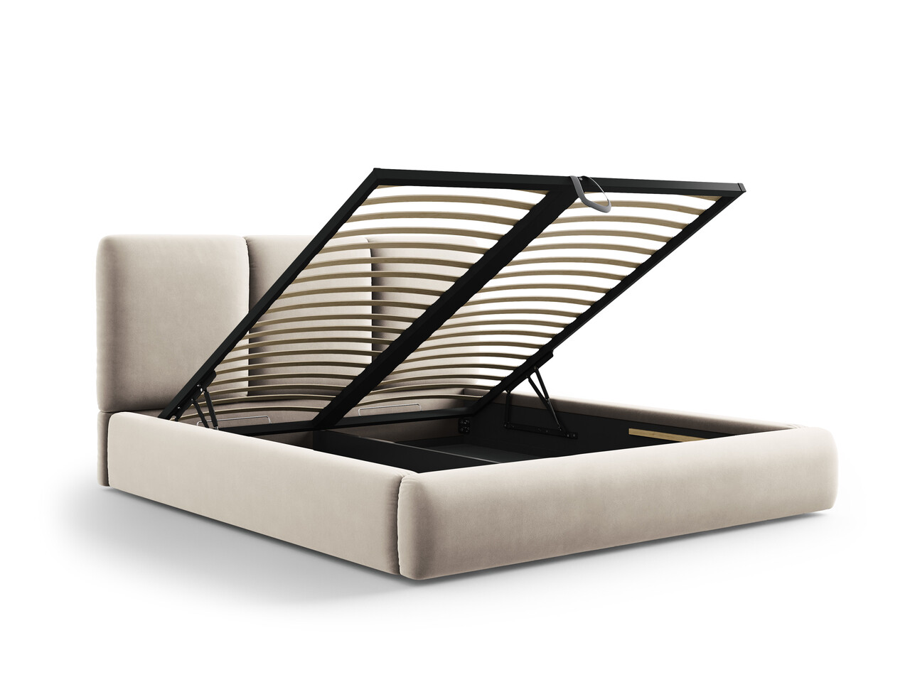 Pat tapitat cu somiera rabatabila si lada depozitare, 180x200 cm, Windsor & Co, Horizon, catifea, bej deschis