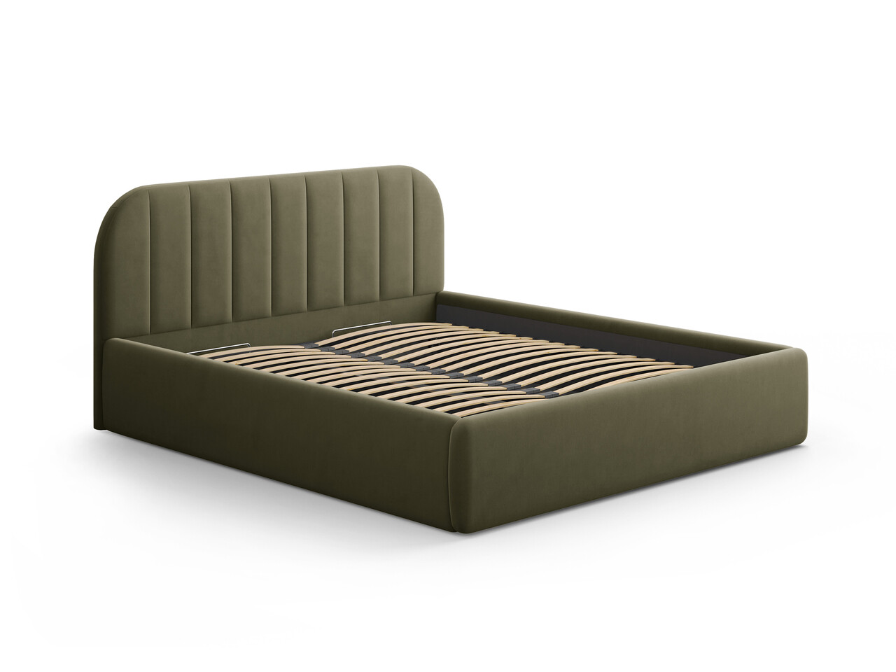 Pat tapitat cu somiera rabatabila si lada depozitare, 180x200 cm, Windsor & Co, Juno, catifea, verde