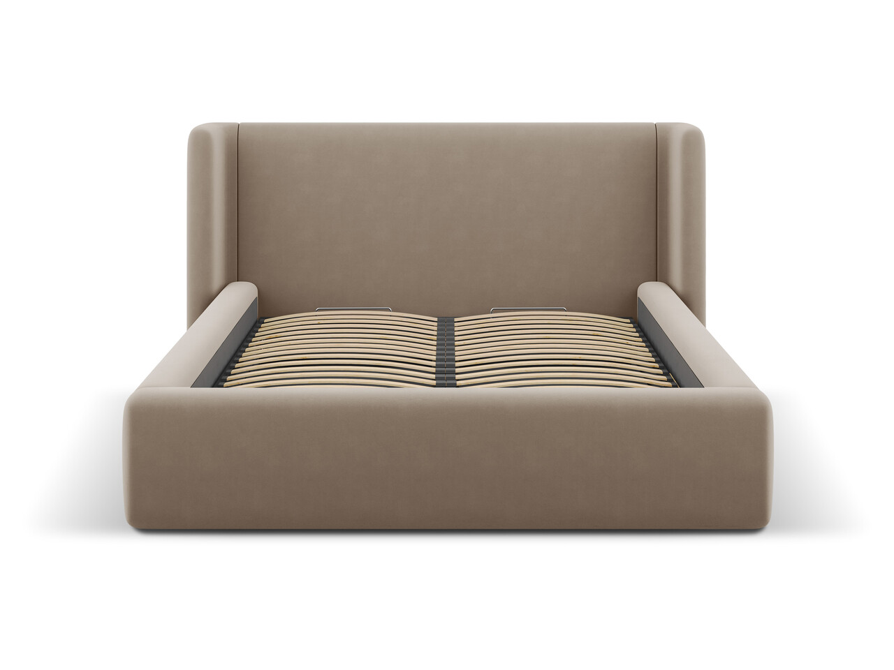 Pat tapitat cu somiera rabatabila si lada depozitare, 180x200 cm, Windsor & Co, Jason, catifea, cappuccino