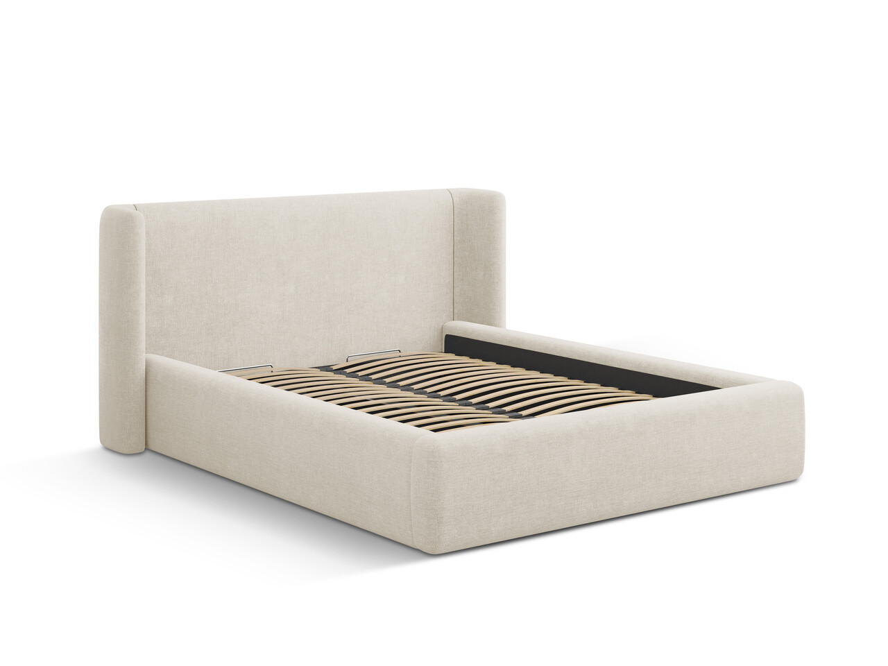 Pat tapitat cu somiera rabatabila si lada depozitare, 180x200 cm, Windsor & Co, Jason, tesatura structurata, bej deschis
