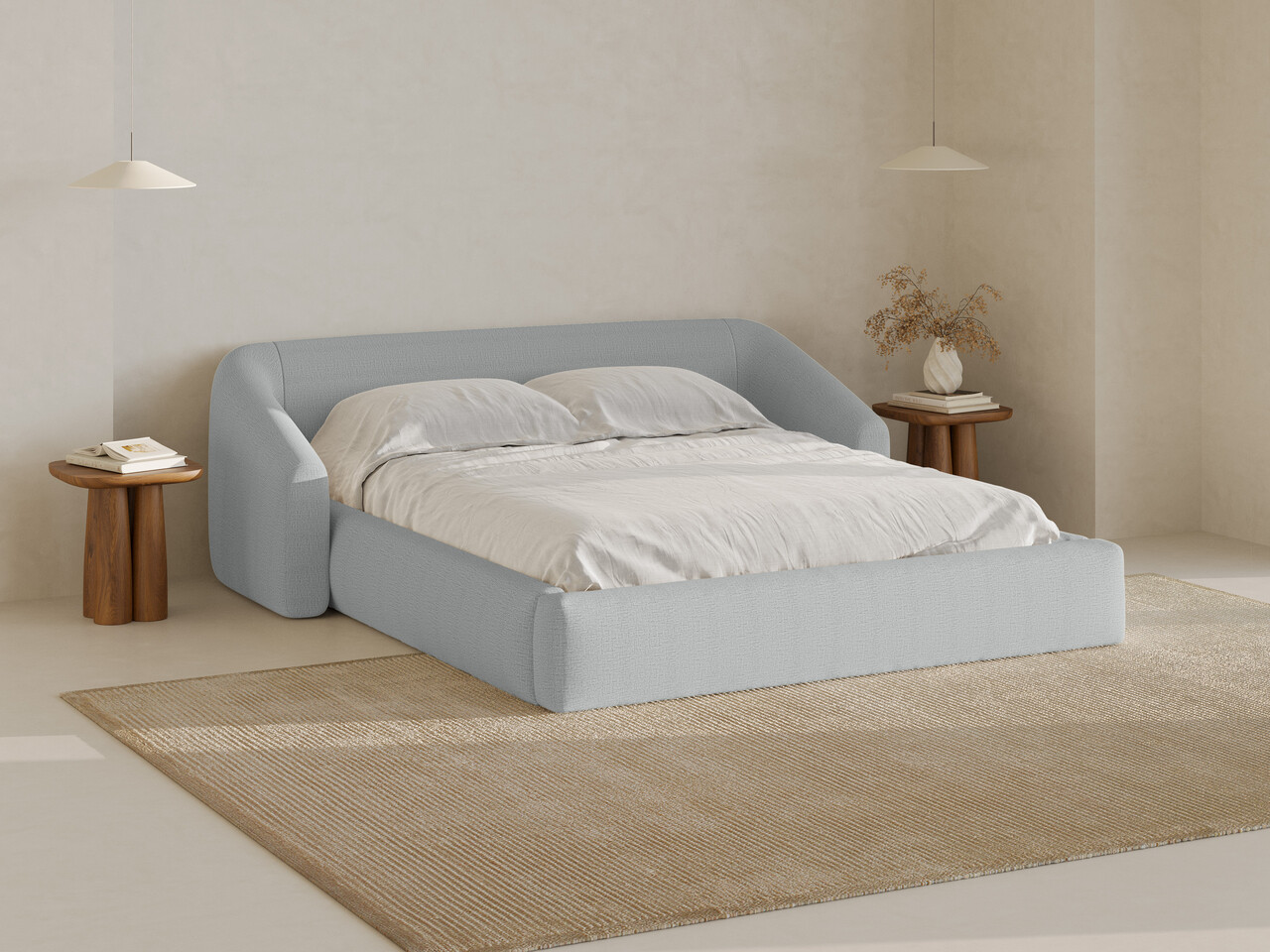 Pat tapitat cu somiera rabatabila si lada depozitare, 180x200 cm, Windsor & Co, Halo, tesatura structurata, gri deschis